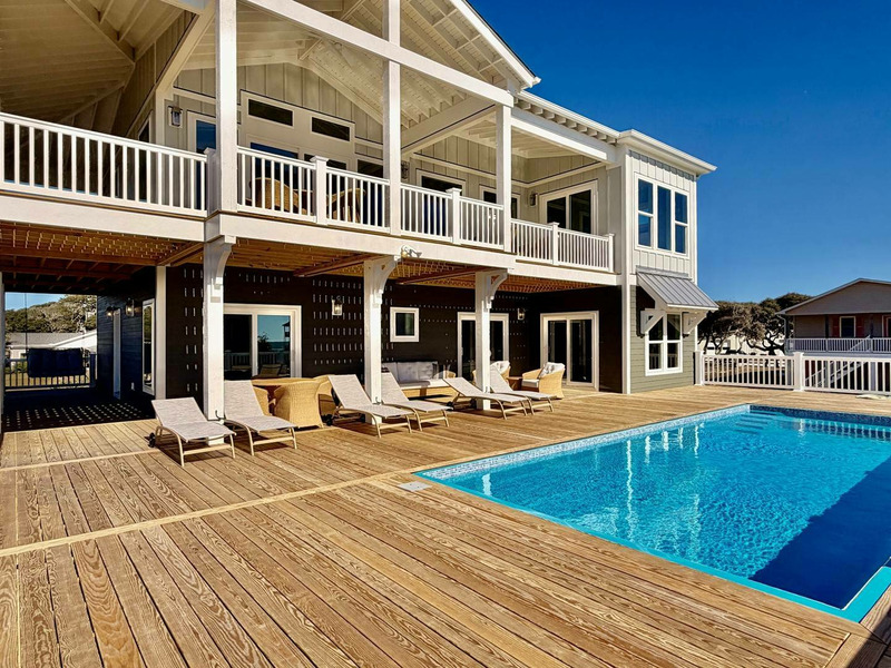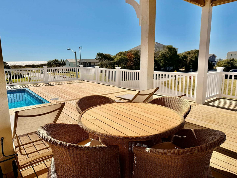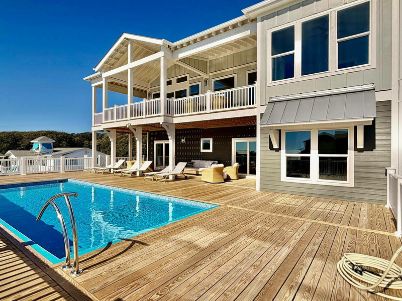 This gorgeous newly built custom construction is all you need for your beach vacation! Let the good times roll as you enjoy the wonderful elevated in-deck swimming pool with pool heating available (for an additional fee). Take a short stroll to the end of the street to spend fun-filled days on the sandy shore and enjoy leisurely walks down the beach to the Oak Island Pier. Lots of unique shopping and dining are also within walking distance of this lovely home. Inside, you will feel right at home with 7 comfortable bedrooms, 5 of which have their own private bath. Gather with your friends and family in your choice of 2 living areas - the main great room on the top floor with the kitchen and dining areas and a smaller living area with wet bar on the middle floor just off the pool deck - so easy to grab quick snacks and drinks as you lounge by the pool. Two wrap around ocean-facing covered porches give you an ideal place to sit back, relax and enjoy spectacular ocean views. If you're SeaKing Good Times, you've found the sweet spot! Make your reservation today! This magnificent new home won't be available long!