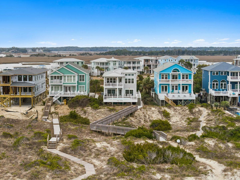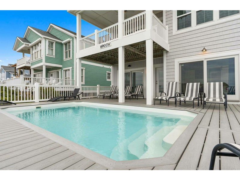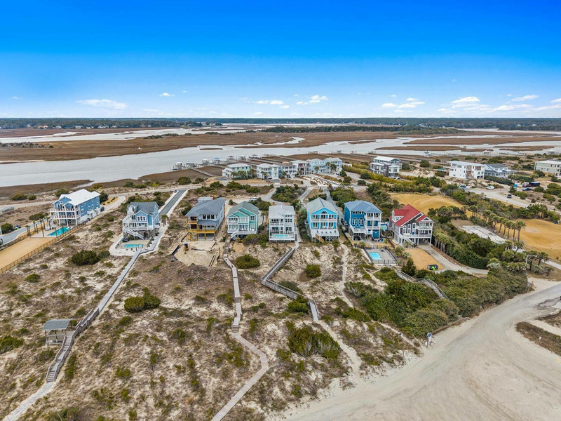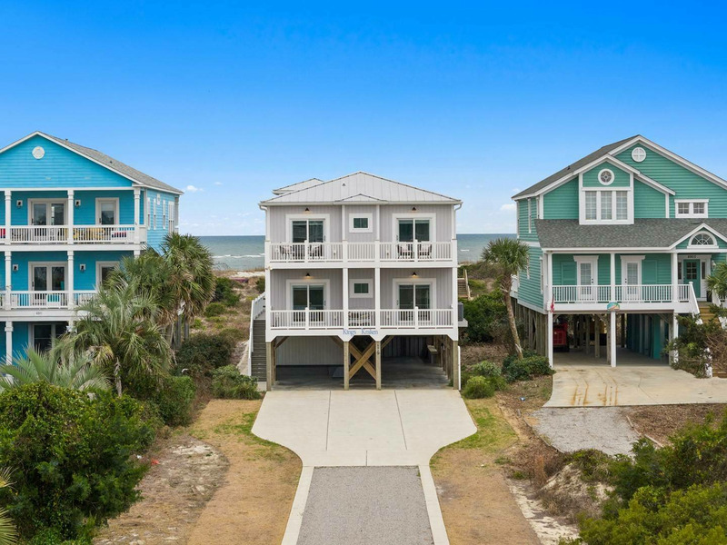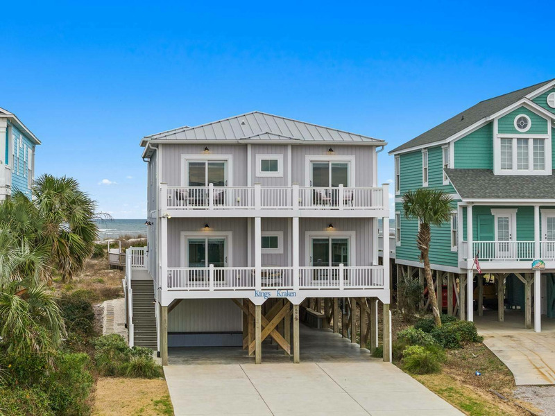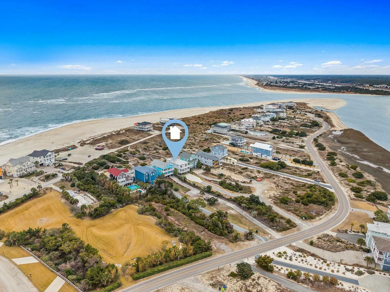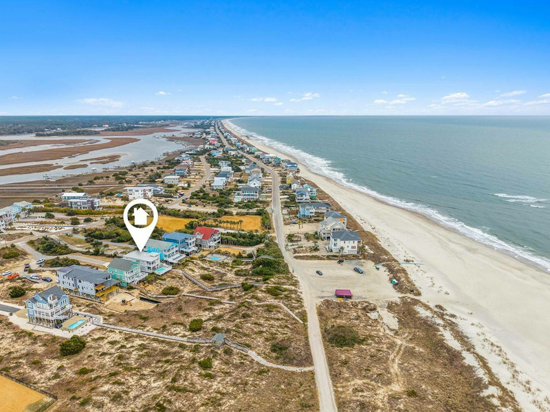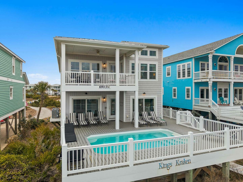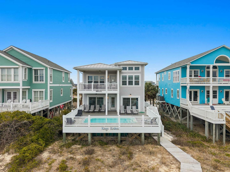Ideally and uniquely located on the very west end of Oak Island where the Intracoastal Waterway and Lockwood Folly Inlet meet the Atlantic Ocean, this magnificent home is a true gem! Designed with you in mind, there is so much to enjoy! Your very own private elevated swimming pool overlooks vast ocean views. A private boardwalk takes you right out to the beach for relaxing hours in the sand and searching for sea shells. Adults and kids alike will love having a game room with pool table and dart board or to take out the Corn Hole set for a bit of friendly competition. Seek out a cozy spot on one of the porches that overlook the Intracoastal Waterway and get the best of both worlds, as you soak in gorgeous sunrises and sunsets over multiple bodies of water right from the comfort of this home. Traveling inside, you are sure to love spending time making memories with your loved ones in the open living, dining and kitchen with ocean views beyond. The modern kitchen is any chef's dream, featuring a large island for extra cooking prep space plus seating, stainless-steel appliances, and a gas stove. Beautiful and spacious bedrooms, some with ocean views and private baths, offer a peaceful oasis for privacy and a restful night's sleep. If you are looking for a venue to celebrate a life milestone or just a reunion with friends, this home welcomes events (for an additional fee). Don't forget to bring your furry best friend as this home is also dog friendly! Kings Kraken is ready to welcome you, so make your reservation today before this island treasure gets taken!