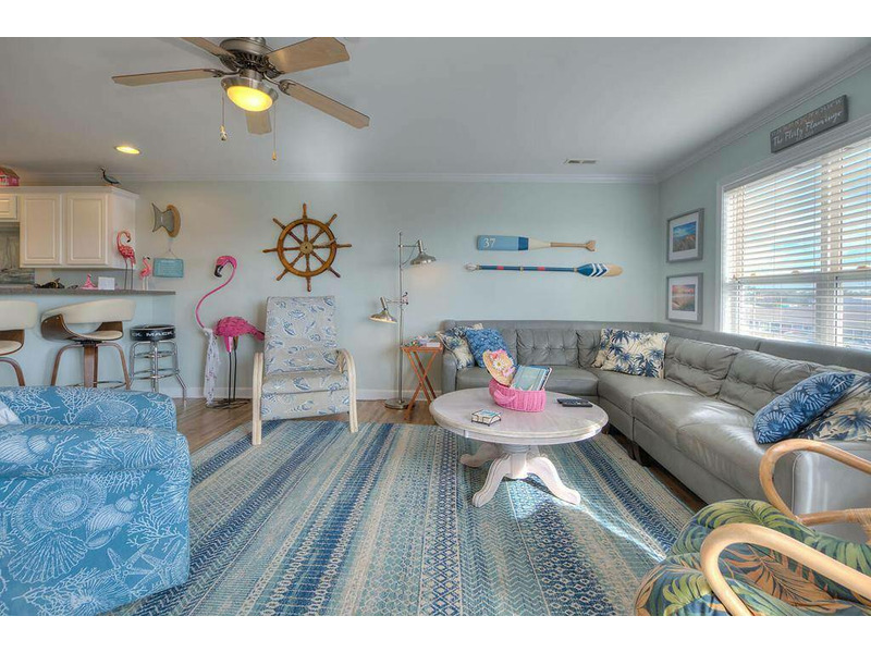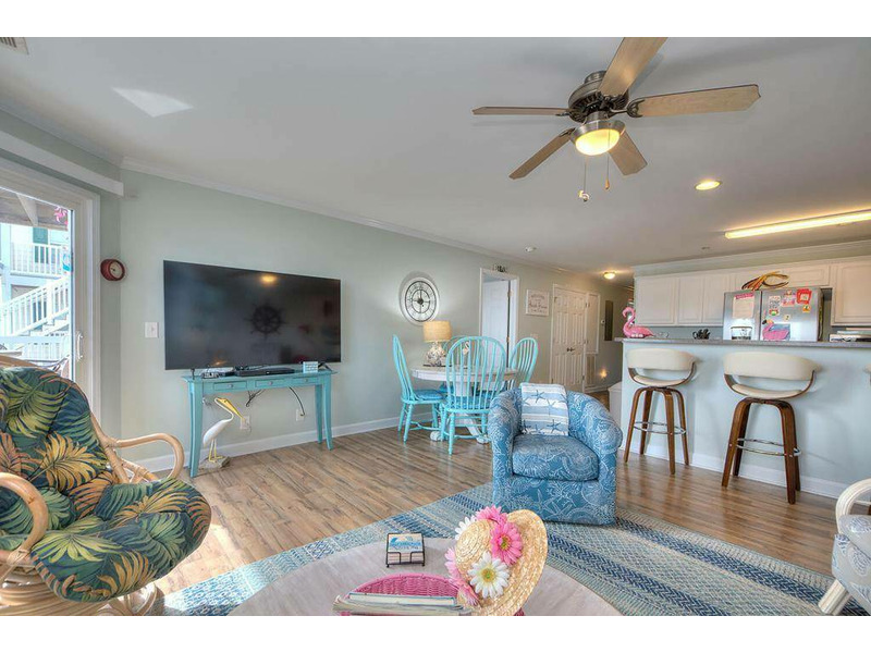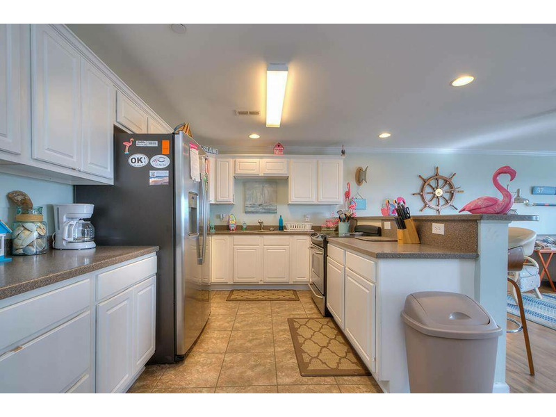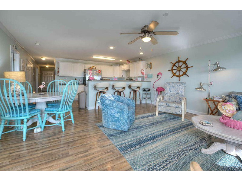 This lovely 3 bedroom, 2.5 bath condo is just a short walk to the ocean. This lovely condo is very spacious so there's plenty of room to bring the entire family. Gaze out from the balcony to watch the ocean waves roll in or watch the pelican formations sail down the sand dune line. With all the conveniences of the commercial within walking distance, walk around the corner and savor a sundae after supper, walk to get groceries from the local Food Lion, several restaurants are in walking distance, as well as surf shops and souvenir shops. The kitchen has stainless steel appliances. Everyone will love to jump in the large Swimming Pool after a sunning day at the beach. The Elevator for your loading convenience is located nearby. Don't miss out on this lovely vacation home!!! Dogs allowed.