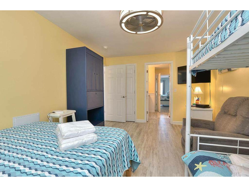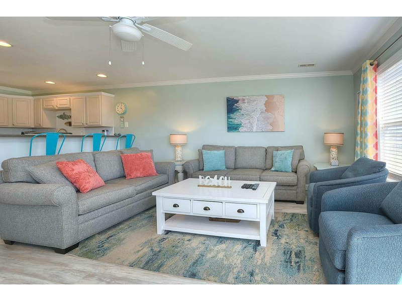 This updated, non smoking condo features a master bedroom with a king bed. Bedroom 2 also has a king bed and bedroom 3 has 1 queen and 1 bunk bed twin over twin, while the living room features 1 double sleeper sofa. Enjoy extended cable on large Samsung TVs. DVD players are located in the great room and the bunk room. Bring your family and friends together in the fully-equipped kitchen to savor a Low Country Boil or take it outside and enjoy the charcoal grills and large outdoor pool. This condo is also dog friendly, so bring up to two of your furry friends (20lbs max).