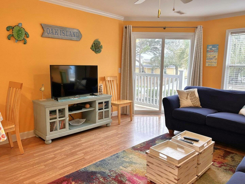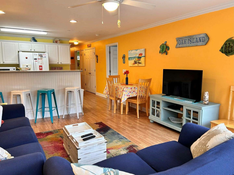 This gorgeous, bright, and cheery condo will make all your cares disappear! Perfectly decorated with your ultimate vacation experience in mind, the quaint, coz,y and happy vibes here will have you so rested and relaxed that you will never want to go back home! Centrally located in the heart of Oak Island, you will be within walking distance of everything - the beach is about 100 yards away at the end of the street, a local park with basketball hoops and a water splash pad is nearby, plus all the shops, restaurants, ice cream parlors, putt-putt and arcade, and even grocery stores you can imagine. Your every need and want will be met right here! Just a short few-minute drive away are more fun activities! Whether you just want to have a quiet retreat with a good book and the salt air and breezes, or are a thrill seeker who likes sky diving, zip lining, and helicopter rides, Oak Island has it all!!! So, what are you waiting for?! Book your reservation today and get Jus' Beachy before this fantastic find is taken!!!!