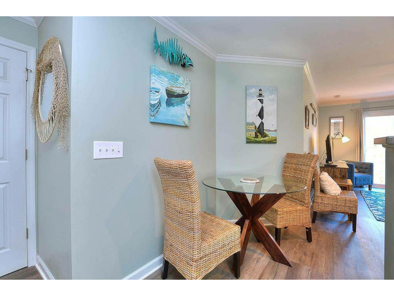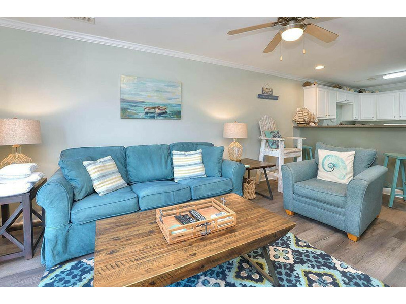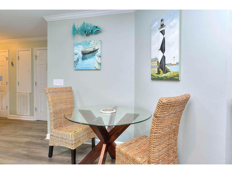 OW 8103 Aqua Escape is an attractively maintained and comfortable haven where you can relax and unwind, featuring very appealing nautical décor. This condo will accommodate up to seven in the two spacious bedrooms, with room for two more on the queen sleeper sofa in the living room. Off the living room is a private "stand only" balcony (no room for outdoor seating) that offers a glimpse of the ocean. The elevator and stairway are just steps from the condo's front door. Enjoy abundant opportunities to hunt shells, watch dolphins play, kayak, jet ski, paddle board, charter a fishing or sightseeing trip, bird-watch, surf, pier fish, golf, play putt-putt, attend weekly outdoor summer concerts, or watch captivating sunrises and sunsets at the beach. With just a 10-15 minute drive to nearby, quaint, and historic Southport, there is even more sightseeing, unique boutiques, as well as fine and casual dining options. Stop by the Southport Visitors Center to learn more about all the fantastic things to do. Everyone will be able to find something they like. You can even take a ferry ride for the day over to Bald Head Island or to Carolina Beach's Fort Fisher Aquarium. Come and get away from it all. The hustle and bustle of our little family-oriented island and surrounding towns is nowhere near as crazy as the big city. Here, you're just a short "Ocean Walk" away from total relaxation with still a bit of convenience.
