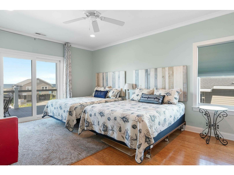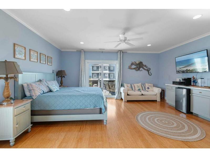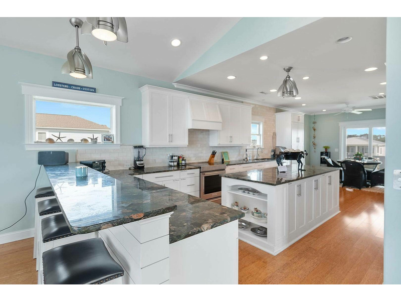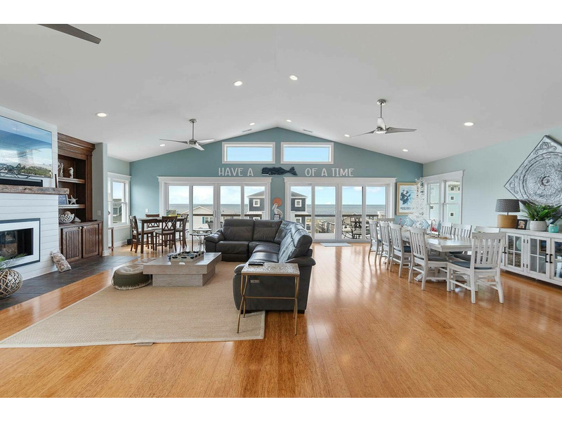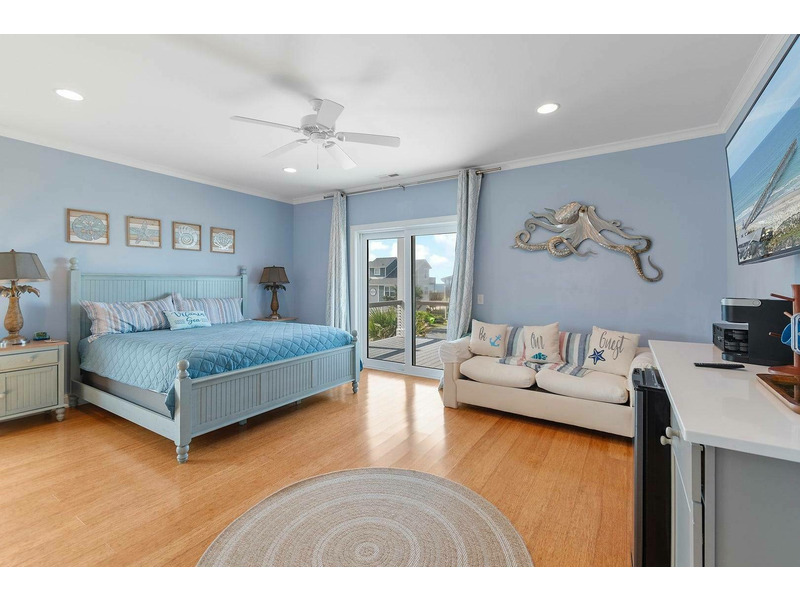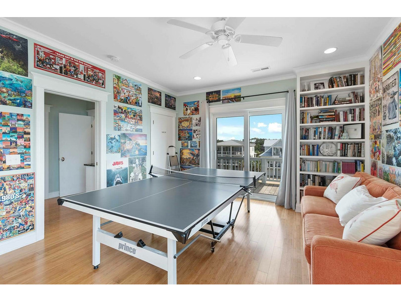A reverse, open floor plan allows you to soak in spectacular ocean views from the top floor while everyone congregates in the enormous great room with multiple dining areas and huge kitchen that any chef would envy. Not only is the kitchen perfect for cooking, but with the openness of the space, the chef in the family can be in on the fun too! Lots of counterspace and cabinetry, modern stainless-steel appliances, plus a large breakfast bar and separate large island. Don't forget to grab that morning coffee at the coffee and beverage bar in the kitchen and walk out to the porch for a beautiful sunrise show over the ocean. The top floor also features a triple bunk bedroom with sleeper sofa and Ping-Pong table that the kiddos are sure to love and will keep them entertained for hours. More fun can be had with the Corn Hole game that thoughtful owners have provided for everyone to enjoy!
