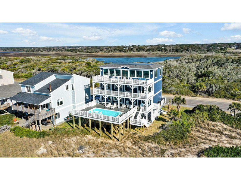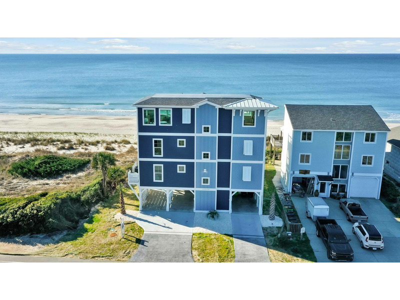 Karefree is a gorgeous home with an elevated in-deck swimming pool! The unique design of this pool and extended deck allows you to feel like you are part of the beach while taking a relaxing dip in your private pool and enjoying expansive ocean views! The open-concept dining, kitchen, and great room overlook the ocean, decks, and elevated pool. The large oceanfront decks ultimately expand your living space so everyone can spread out and enjoy the scenic views down Oak Island.