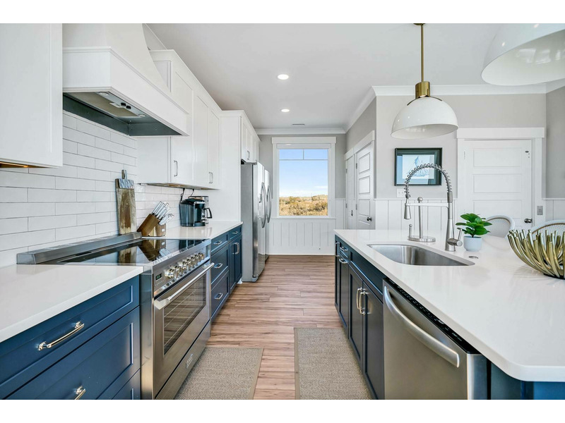- Kitchen: Quartz countertops, breakfast bar, stainless steel appliances, refrigerator, electric range with cooktop, dishwasher, air fryer, crockpot, griddle, blender, toaster, stock pot, and Keurig coffee maker.