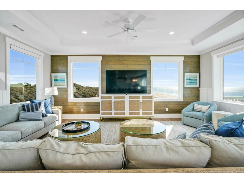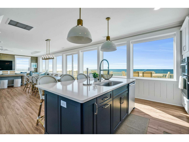 The kitchen is a culinary artist's dream and has everything you need to feed a large group, including a Ninja crockpot/Instapot, a giant lobster pot, 3 ovens, two outdoor grills, and an oversized blender to make any frozen drink you can think of. With two refrigerators in the kitchen and a large refrigerator on the deck level, you can be sure everyone will have easy access to food, ice, and cold drinks! Just steps away from the kitchen is an oversized sectional and chairs that will seat all your guests comfortably while enjoying 360-degree ocean views and the Intracoastal Waterway. Grab one of the many games offered at our home and host a family game night. We've supplied everything to ensure your stay is filled with fun activities.