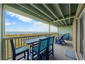 An oceanfront Main Bedroom furnished with a pillow topped mattress King Bed, ceiling fan and your own private access to the deck. The covered deck is outfitted with several seating options from lounging to dining allows you to spend time outside no matter the weather from sunrise to sunrise and the fireworks in-between. Double Slider Doors in both Living Room and Master Bedroom allows for those breathtaking views from most anywhere in the condo. Master Bath has an easy step shower.