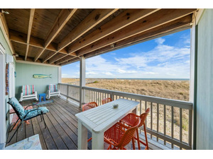 Upon entering you will be drawn to the Family Room's sliding glass doors which leads to the large oceanfront deck where you will spend your mornings and evenings breathing in the salt air.   The Family Room is open to the Dining Space with seating for 6, perfect for enjoying your meals or spreading out the game board.