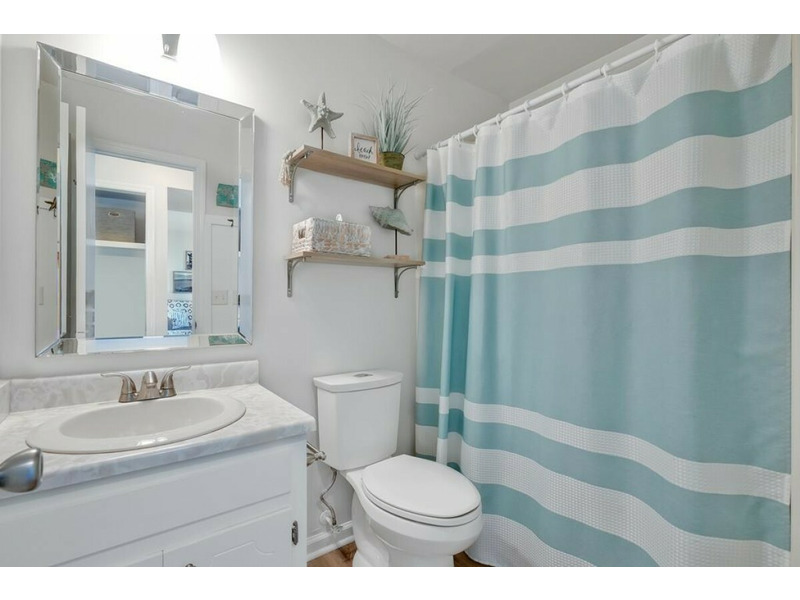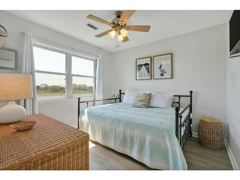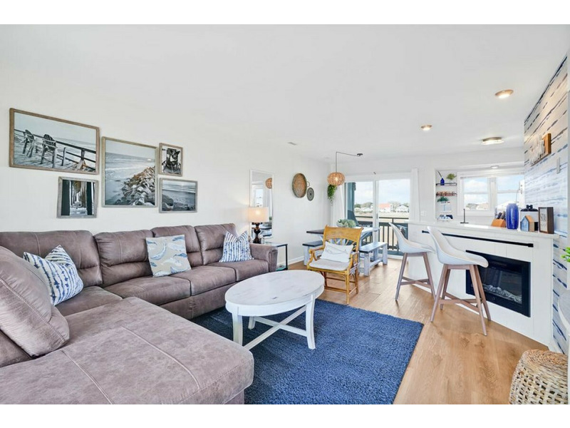 Enjoy A Seaside Sunset year-round!! This two-bedroom, two-bathroom ocean view condo located at the SeaWinds complex with a large pool sits at the North-End of Carolina Beach just steps from the beach & Freeman Park Beach where your dog is welcome every day, all hours. Tastefully decorated in coastal décor, you will find yourself happy to spend time indoors amongst the stylish interior. The fully stocked kitchen is ideal for those meals enjoyed in with ample seating at the dining room table and 2 at the bar. The master bedroom is equipped with a king size bed, access to the covered balcony to observe sunsets & the natural habitat + a 36" Roku TV. The second bedroom sits on the marsh side and features a queen & twin trundle bed along with a 32" Roku TV. The living room offers additional sleeping with a queen sleeper sofa. You will also find a 55" Roku TV, and balcony access to relax in the shade.