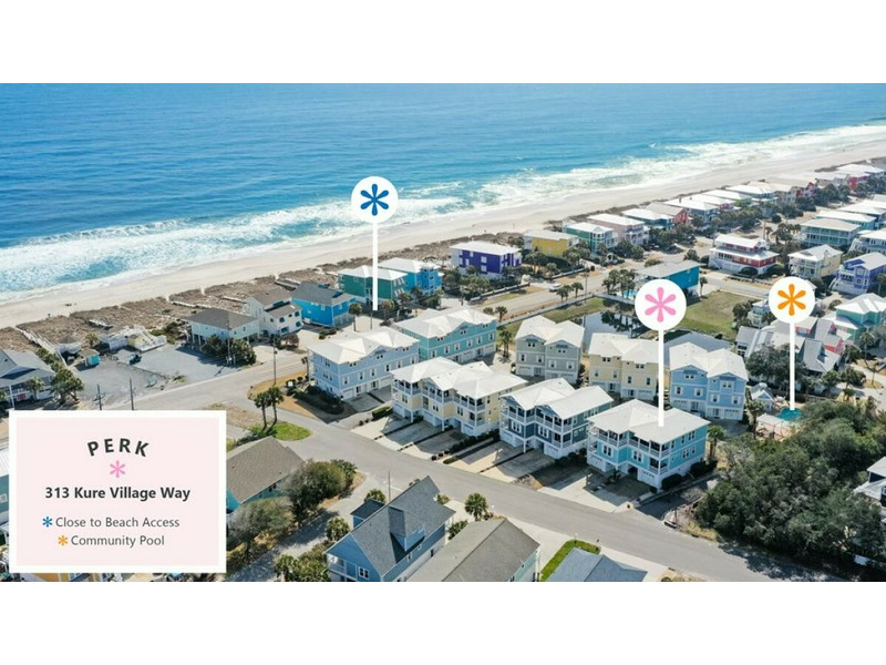 NEW TO VBV!! Welcome to Seaview Retreat, just steps from the ocean! This beautiful, four-bedroom townhome with ocean views includes everything you need for an enjoyable vacation. It even allows you to bring your furry family member. Featured amenities include a refreshing community pool, an elevator, and linens with beds made upon arrival. The spacious covered porches provide a peak of the ocean while inviting soothing coastal breezes. Comfortably furnished and fully equipped with bed sheets and bath and kitchen towels, this home is conveniently situated near the Kure Beach Pier. Property Layout: The ground floor features a King Primary suite with an en-suite bathroom, a walk-in shower, and sliding doors that open to a green space. The laundry room, equipped with a full-sized washer and dryer, and elevator access are also located on this level. The second floor offers three beautifully decorated bedrooms. This includes a second King Primary suite with a private en-suite bathroom and access to a furnished outdoor deck. The additional bedrooms include one with a queen bed and another with two twin-over-twin bunk beds, sharing a bathroom with a tub/shower combination. Each bedroom is equipped with a ceiling fan and TV. The spacious third floor features a marvelous open floor plan with comfortable seating and a large flat-screen TV. Sliding doors lead to the front porch, where you can relax in rockers and enjoy ocean views. The floor also includes a fully stocked, beautifully appointed kitchen and a dining area with seating for six, plus four stools at the kitchen island. You can also enjoy a refreshing dip in the community courtyard pool after a day at the beach, and the Public beach access is just a short walk away.AMENITIES INCLUDE