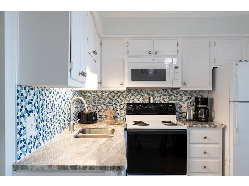 The kitchen comes fully-equipped with a refrigerator with attached ice maker, microwave, oven, dishwasher, toaster, blender, coffee maker, and Keurig coffee maker to make home cooked meals and your morning coffee easy and accessible to you and your party throughout your stay.