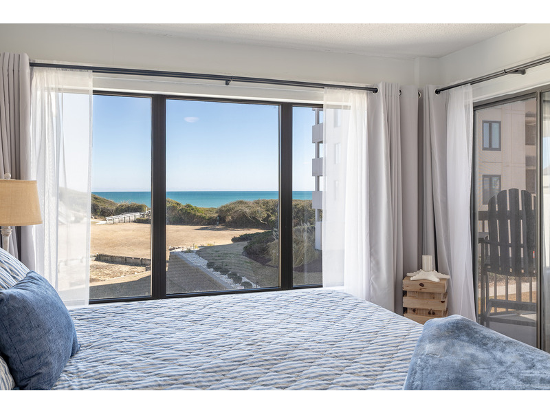 Located on the first floor of Building 3, enjoy the modern light and airy feel of the great room including the living area with Double Sleeper Sofa, covered balcony with furniture and Atlantic Ocean views, Dining Area, and Fully Equipped Kitchen. The welcoming Master Bedroom offers a King Bed, TV and Private Full Bath. Bedroom #2 provides comfort and flexibility in sleeping arrangements with a Queen Bed, Twin/Twin Bunk Set, TV, and access to the Shared Full Bath.
