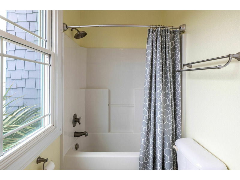 Level One: Bedroom #1 is a Master Bedroom with Queen bed, Smart Roku TV, ceiling fan, en suite private full bath with soaker tub and separate shower, and access to the deck this level. Bedroom #2 has a Double bed, Smart Roku TV, ceiling fan, and access to the shared full bath this level. Bedroom #3 has a Double bed, Smart Roku TV, ceiling fan, access to the shared full bath this level, and access to the deck this level.
