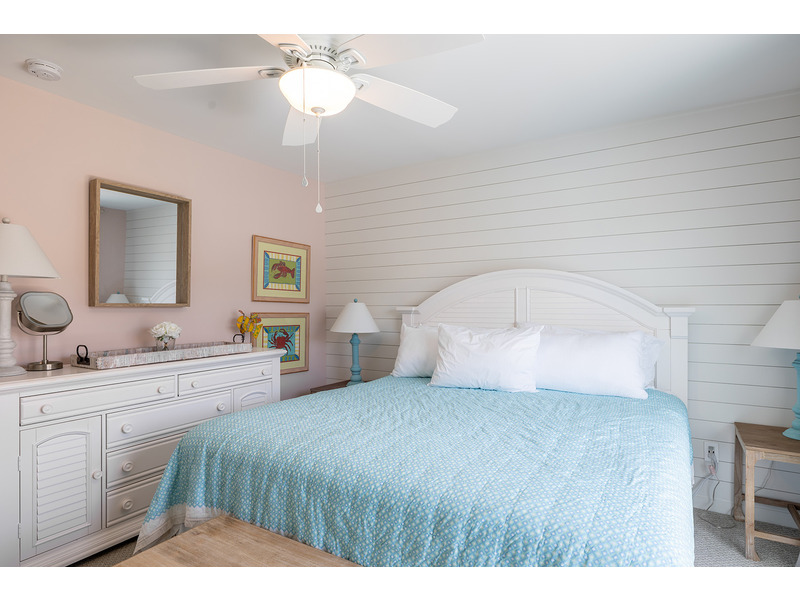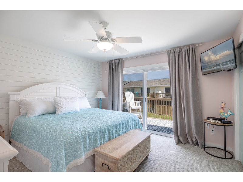 Bedroom #1 offers a King Bed, TV, and Deck Access while Bedroom #2 offers 2 Queen Beds and TV.