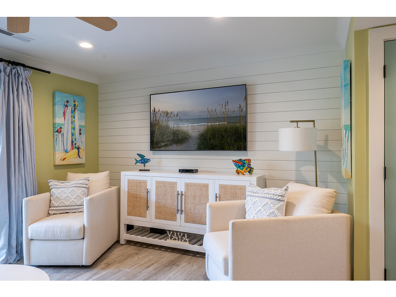 Additional Amenities: High Speed Wireless Internet. 3 Flat Panel TVs with satellite/cable service with 2 Smart TVs for access to your favorite streaming apps; HVAC, Ceiling Fans; Interior Washer/Dryer, Fully Equipped Kitchen with Stove/Oven, Refrigerator with Attached Ice Maker, Keurig Coffee Maker, Microwave, Dishwasher, and Blender; Iron/Ironing Board; Outdoor Deck area with Furniture, Charcoal Grill.