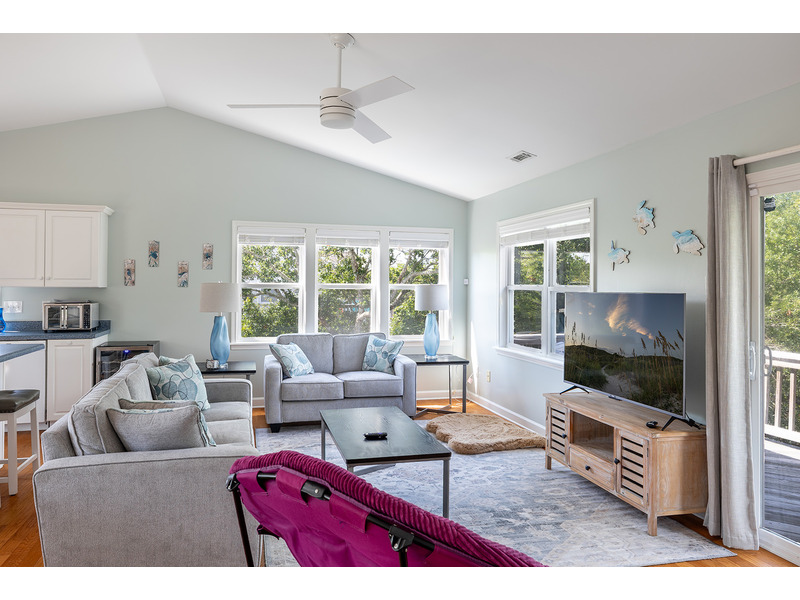 Amenities: 4 Smart TVs, High Speed Wireless Internet; Rec Room with Pool Table; Interior Washer/Dryer; HVAC, Ceiling Fans; Fully Equipped Kitchen with Stove/Oven, Refrigerator, Coffee Maker, Keurig Coffee Maker, Microwave, Dishwasher, Beverage Refrigerator, Toaster Oven, Blender, Air Fryer; Covered and Open Deck Areas with Furniture; Enclosed Hot/Cold Outdoor Shower; Driveway Parking.