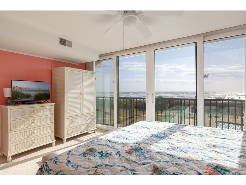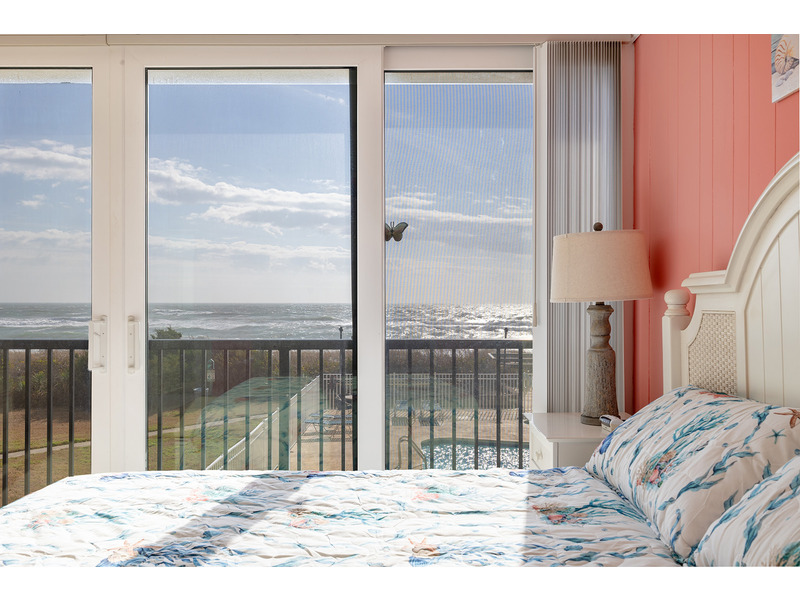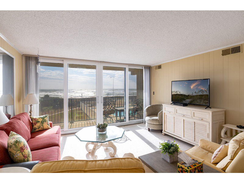 This 2nd Floor Oceanfront Condo offers 2 Bedrooms and 2 Baths. Bedroom #1 has a King Bed, Smart TV, Private en suite Full Bath, and access to the Balcony. Bedroom #2 has a Queen Bed, Roku TV, and access to the shared Full Bath. A Double Murphy Bed is located in the Living Area where you'll also enjoy comfortable seating, a Smart TV, and ocean views! Step out to the private balcony with furniture to enjoy the beachside sun, sea, and sounds!