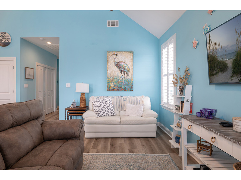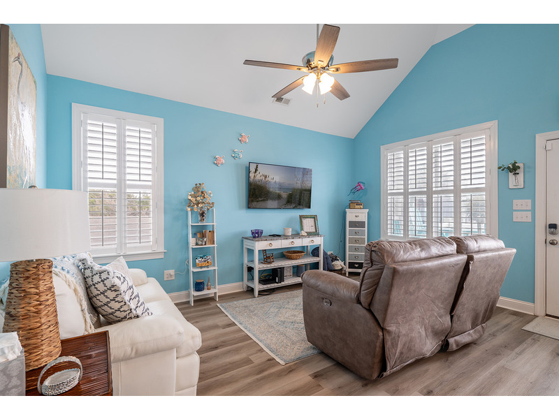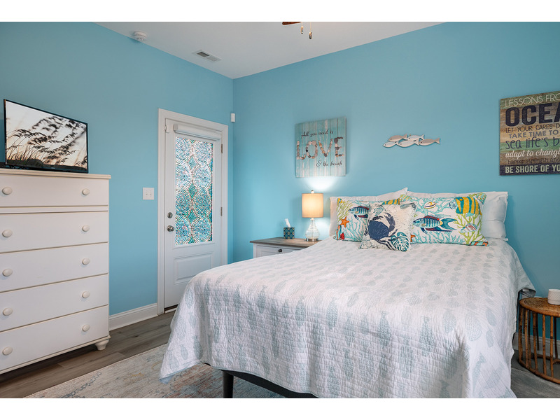 Bedroom 1 provides a King Bed, Smart TV, Private Full Bath, and Private Deck Access. Bedroom 2 provides a Queen Bed, Smart TV, and access to the Shared Full Bath. Bedroom #3 offers a Twin Bed and access to the Shared Full Bath. Enjoy surrounding views from inside or out as well as the complimentary beachy breezes.