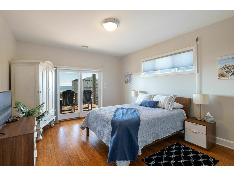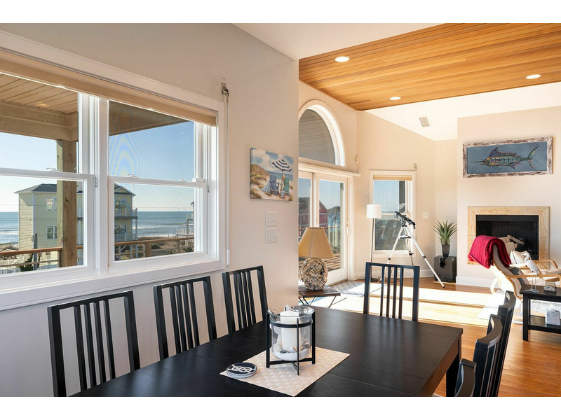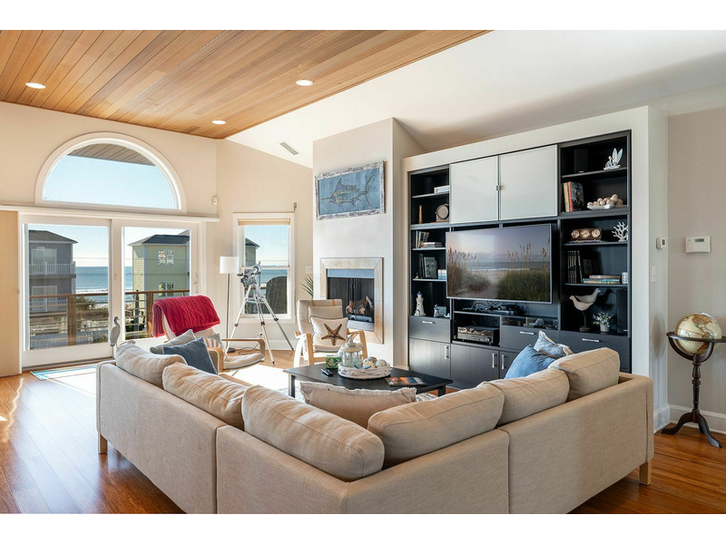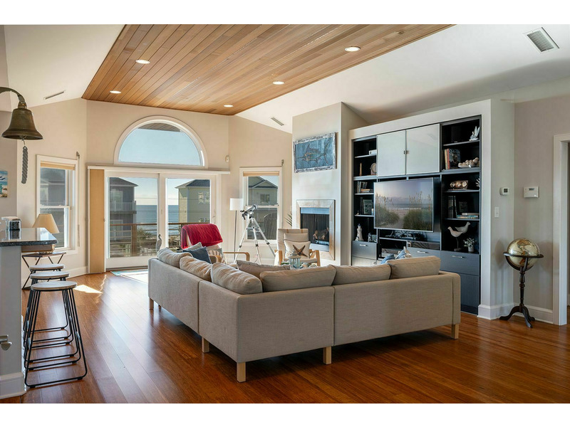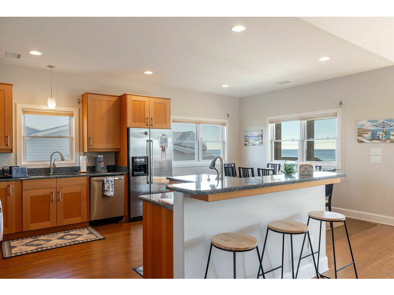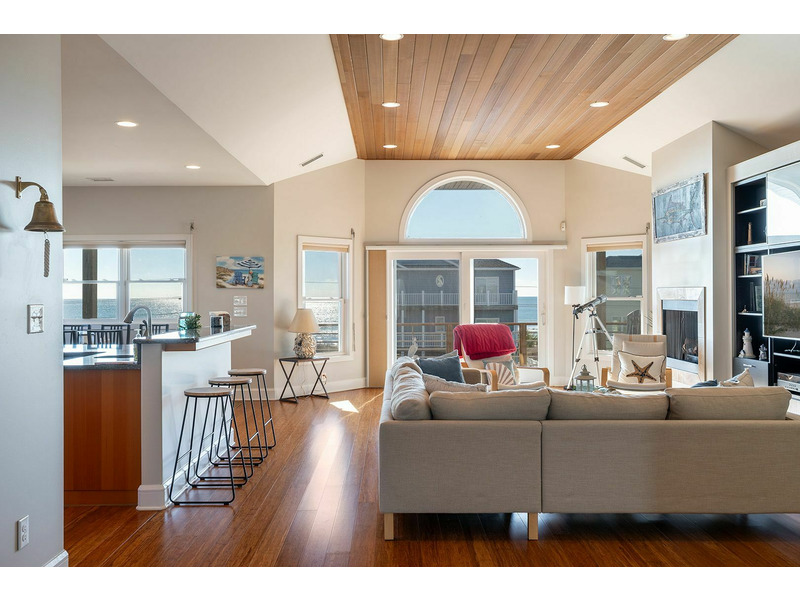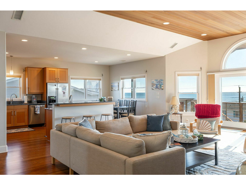 Floor #2: Spacious Living, Dining, and Kitchen and exceptional Ocean to Sound Views! Bedroom #1 with Queen Bed, Smart Roku TV, Ocean View, Private Bath, and Deck Access; Bedroom #2 with Twin/Double Bunk Bed and Twin Bed, Smart Roku TV, Sound View, and access to the Shared Bath; Bedroom #3 with Queen Bed, Smart Roku TV, Sound View, and access to the Shared Bath.