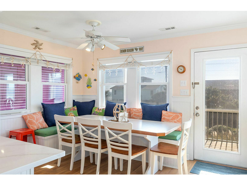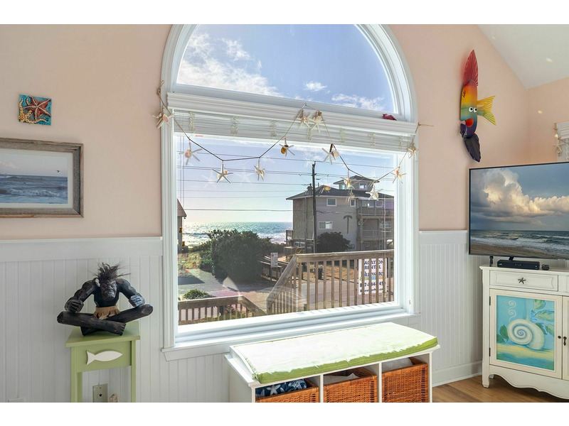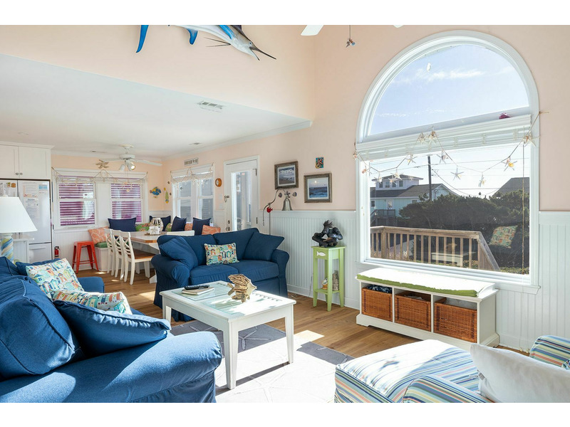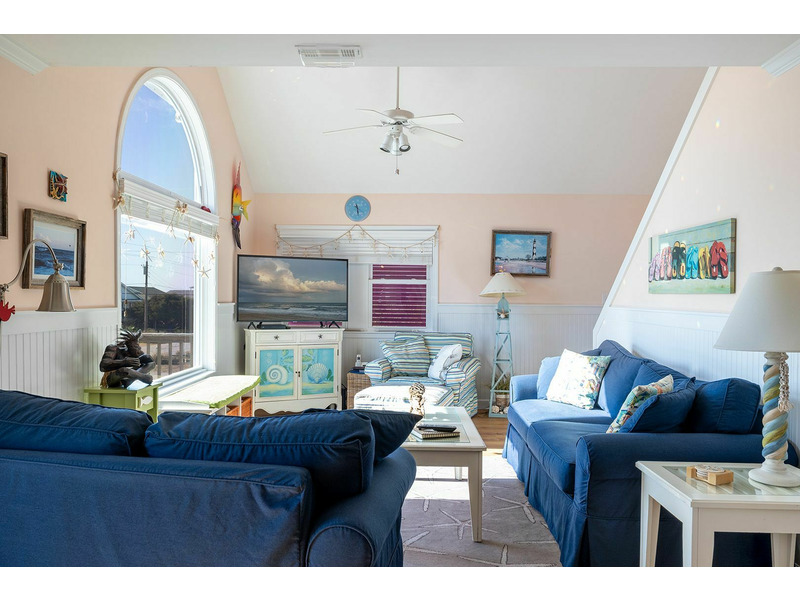 Cardinal's Landing is a gorgeous 4-Bedroom, 3-Bath Almost Oceanfront home. Walk out the front door three steps from this home and you will be at the beach! This beautifully decorated home offers unforgettable views of the ocean. You can either enjoy these views sitting on the screened- in porch or off the private balcony from the upstairs bedroom. While visiting with your family or friends you can look out the array of windows from the Living Room overlooking the Atlantic Ocean. This home offers the perfect setting for a family vacation!