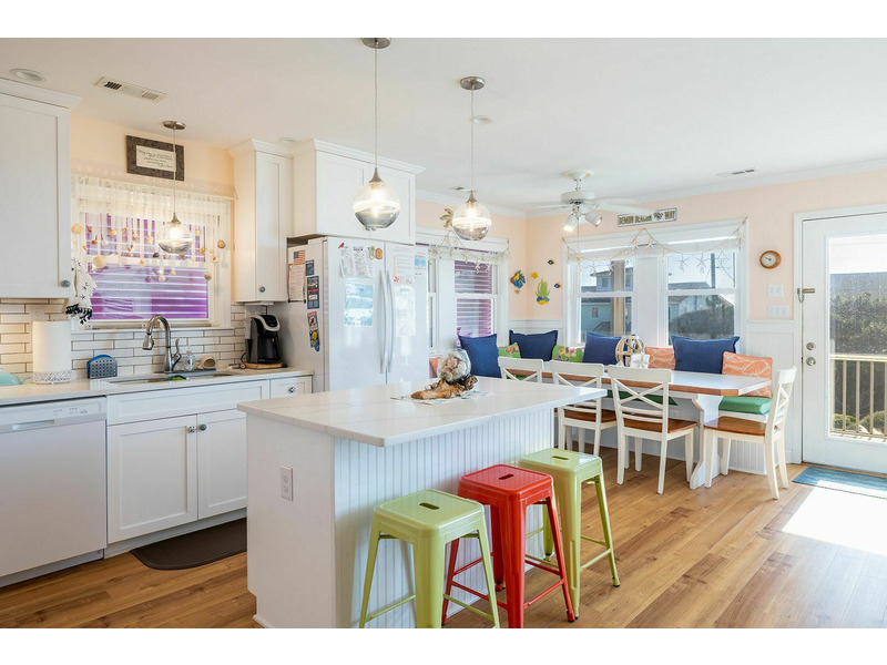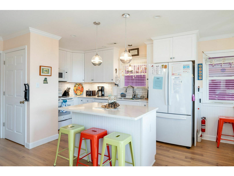 Level One: Come in and enjoy the neatly designed kitchen and the dining area that seats 8 with additional seating for 3 at the kitchen island. The Living Room offers a fantastic view of the ocean with the array of windows. You also have access to a screened in porch and balcony. Bedroom #2 offers a Queen Bed shares a bath in the hallway with a bonus room.