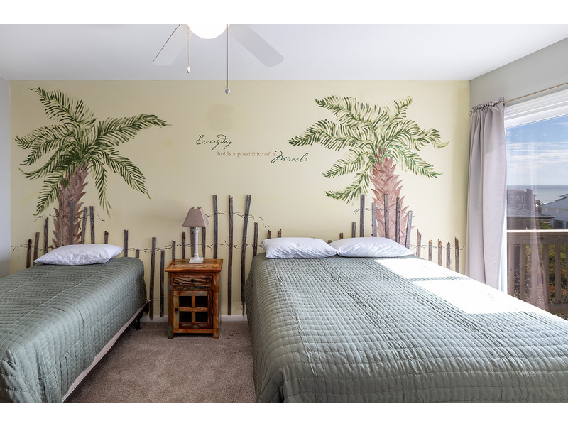 Level Two: Bedroom #2 has a Queen Bed, a Full Bath and a private ocean view deck. Bedroom #3 has a Queen Bed and private ocean view deck. Bedroom #4 has a Queen Bed, Twin Bed, and a private ocean view deck. Bedrooms #3 and #4 share a full bath.