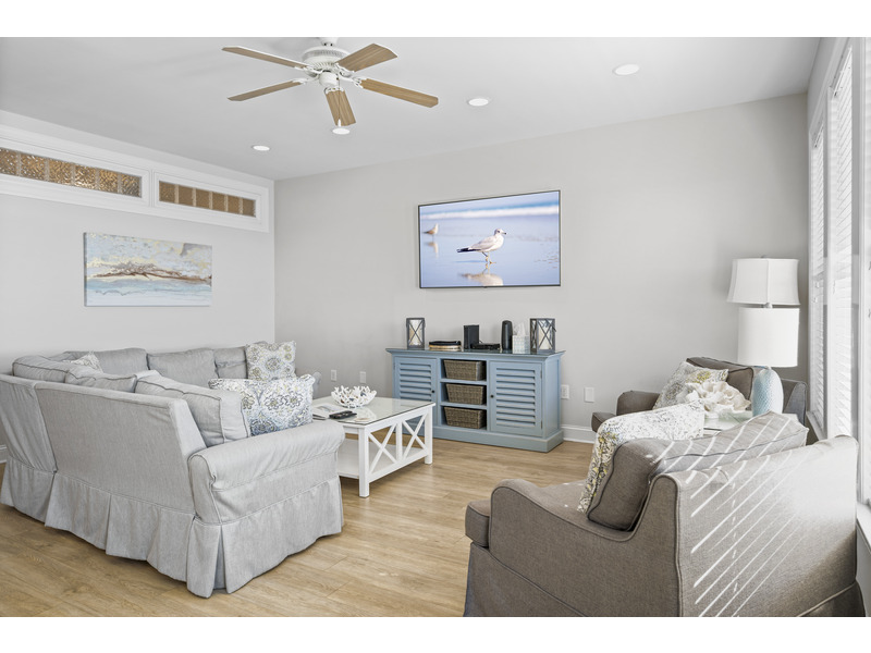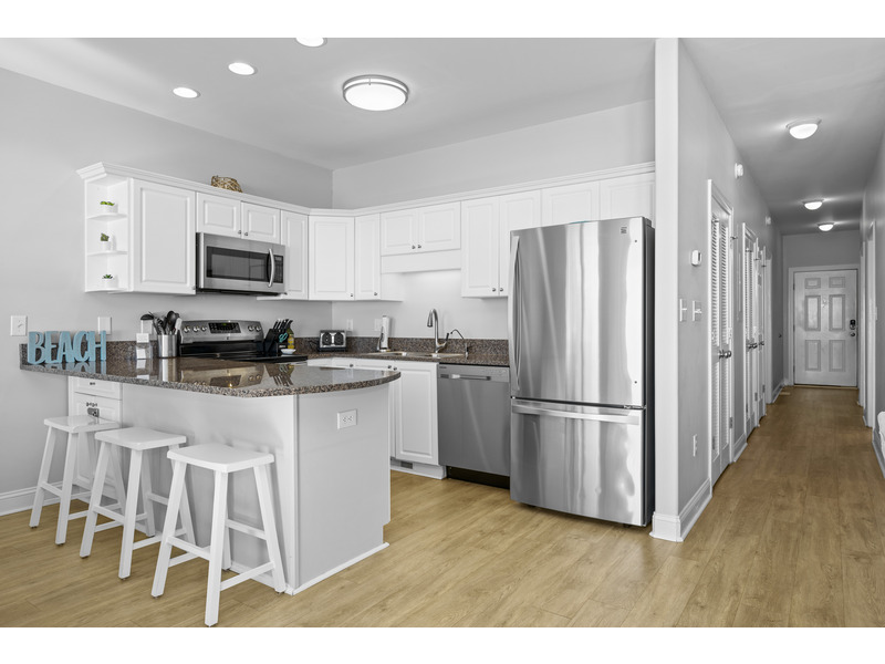 3 BR, 2 B. K * Q * B. Island Club linen service with beds made. Third bedroom is sleep den with bunk beds and no closet. Oceanfront with beautiful views of the Atlantic from your living area. Private balcony overlooking the pool. Close proximity to elevator, pool and outdoor grilling area. Cable TVs in all bedrooms including 65" Smart TV in living area, 50" Roku Smart TV in primary bedroom, and Roku TV in bunk room. Wireless Internet access, ceiling fans, water softener. Fully equipped kitchen with stainless steel appliances including dishwasher, wine cooler, filtered drinking water and washer/dryer. Private primary suite with walk-in shower and double vanity sinks. Large covered oceanfront deck with balcony furniture including bar-height table and chairs and Adirondack rockers to relax and take in the amazing view. Weekly and monthly rates available. No smoking. No pets.