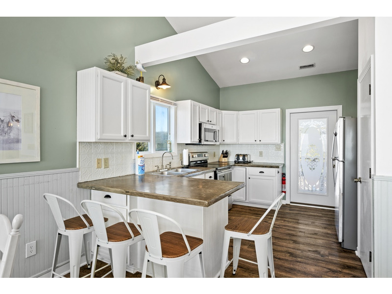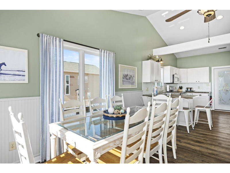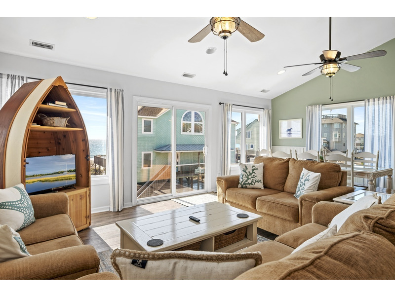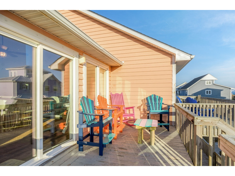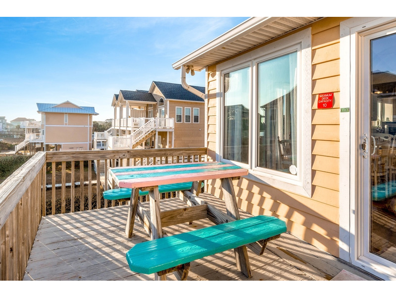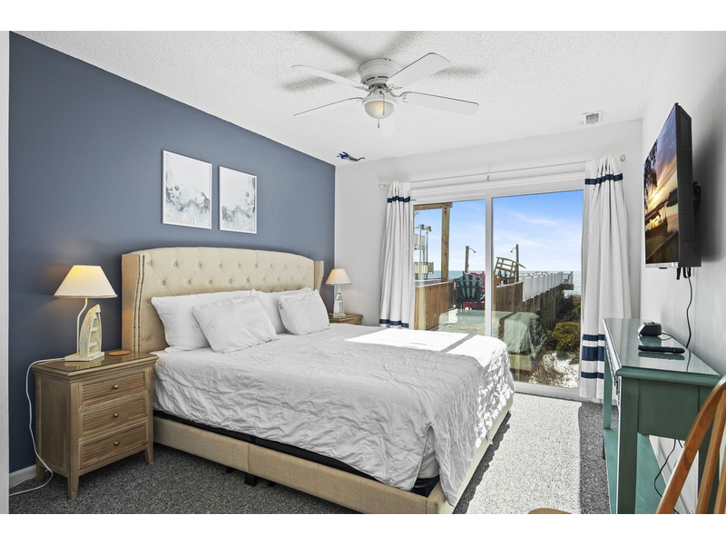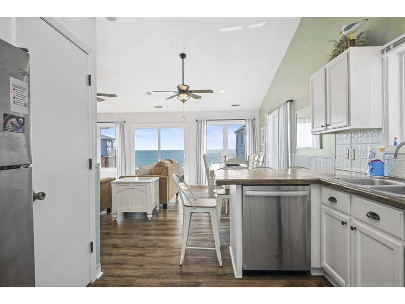 Duplex, West side only. 4 BR, 3 1/2 B. K * Q * Q * Q. Island Club linen service with beds made and No Worries Comforters. Enjoy beautiful views of the ocean from top level living. kitchen and dining area boasting an open floor plan with vaulted ceilings. Fully equipped kitchen with concrete countertops and stainless steel appliances. Wake up to the morning sun and sound of the waves. Primary suite and Queen guest bedrooms offer ocean views and direct access to the covered deck. Lower level offers fourth bedroom with Q bed and separate climate control with its own split unit A/C, second full kitchen and dining area, living area and large flat screen TV, foosball and game tables, and direct access to the beach. Washer/Dryer, 6 Smart TVs, cable TV (Spectrum app), wireless Internet access, Hoshizaki ice machine, ceiling fans throughout. Hair dryers provided. Each level of the home accesses the newly constructed (2026) composite board deck with all new PVC railing. The new deck doubles the space for outdoor dining and lounging from previous years. Regulation horseshoe pits and corn hole boards. Enclosed hot/cold outside shower, stainless steel park-style charcoal grill. Great location allows approximately a one mile beach walk to the point at the far western end of Emerald Isle for breathtaking views of beautiful sunsets, pristine natural settings and excellent shell collecting; or walk east on the beach a little over a mile to the historic Bogue Inlet pier which offers a lively setting with access to dining, fishing and other beach activities. Keyless entry. Right off of Coast Guard Drive, this property offers easy access on and off of the island even during the busiest times. Minutes to shopping, groceries, and restaurants. Situated on an oceanfront peg lot. Weekly only. No smoking. No pets. 9423 Ocean Drive.