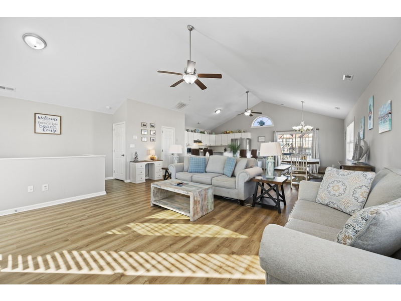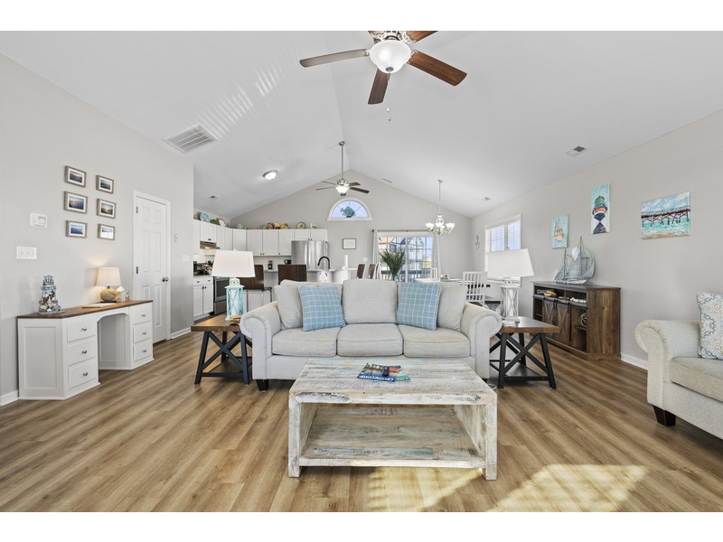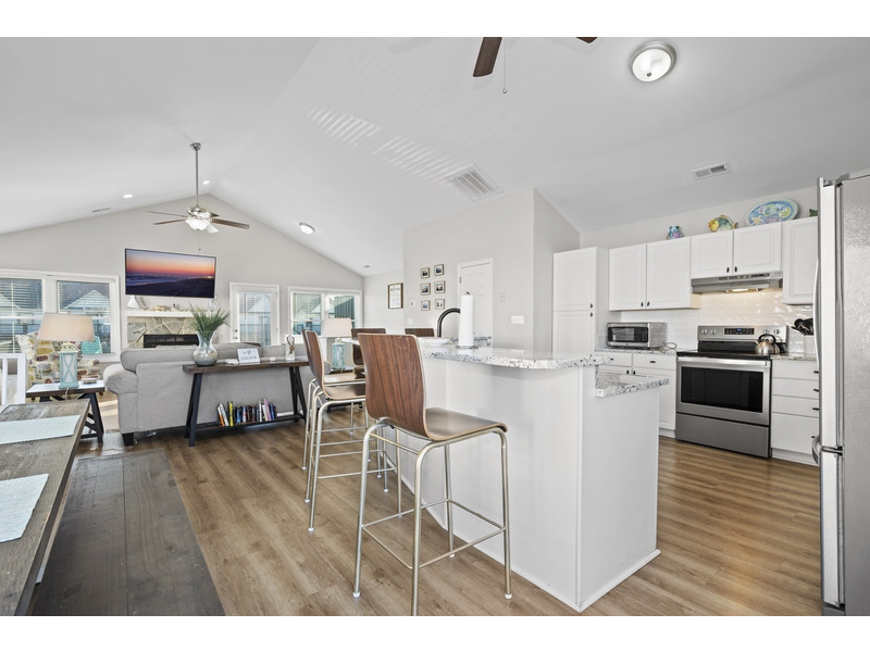 4 BR, 2 B + 2 half B. K * K * Q * 2S. Island Club linen service with beds made and No Worries Comforters. Primary bedroom with king and private bath. The reverse floor plan offers an open living, dining and kitchen on third floor. Dishwasher, washer/dryer, Roku TVs throughout, wireless Internet access, garden tub. Decks on all levels offer great ocean and sound views. Private community beach access. Weekly only. No smoking. No pets. Two parking spaces per unit. No boats or trailers.