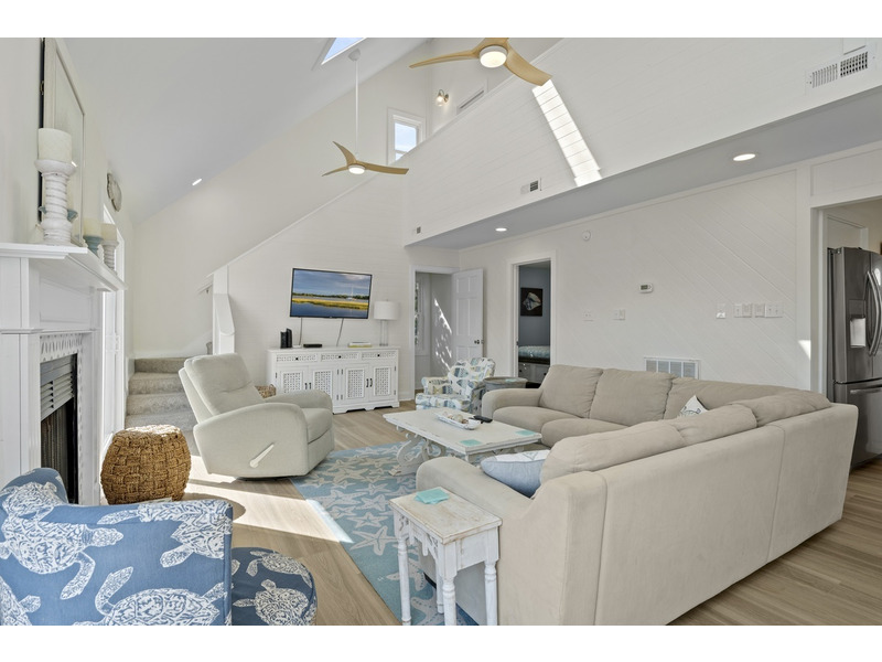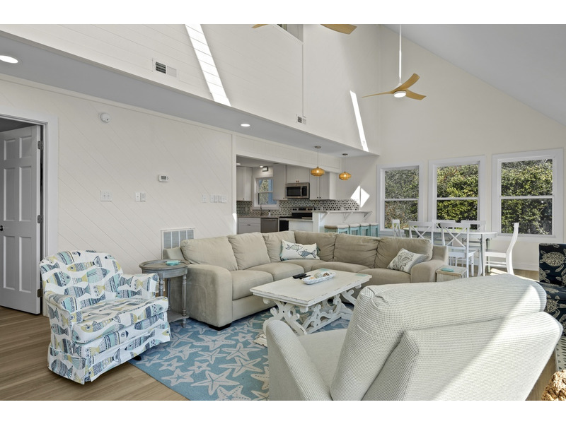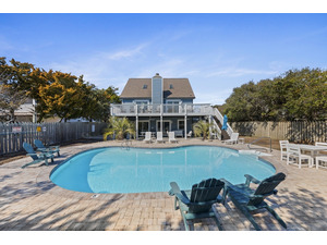 Oceanside, oceanview cottage. 4 BR, 3 B. K * Q * Q * 2B * 2S. Island Club linens provided. Private swimming pool surrounded by well-furnished patio/pool deck including a covered picnic area. Spacious living and kitchen areas with dishwasher, washer/dryer, 5 Smart TVs (cable in living area TV; stream from your own accounts), wireless Internet access. Primary loft suite with King bed, private bath and good views. Ground level game room with foosball and mini kitchen for easy lunch prep by the pool and hot tub. Covered and open decks with plenty of outdoor furniture to enjoy after a long day at the beach. Large, enclosed hot/cold outside shower, charcoal grill. Convenient three-minute walk to the beach and close to Emerald Isle's boat launch facility. Adjacent to the Emerald Isle walking and bike path. Available year-round. Three-night minimum. No smoking. No pets. 5423 Emerald Drive.