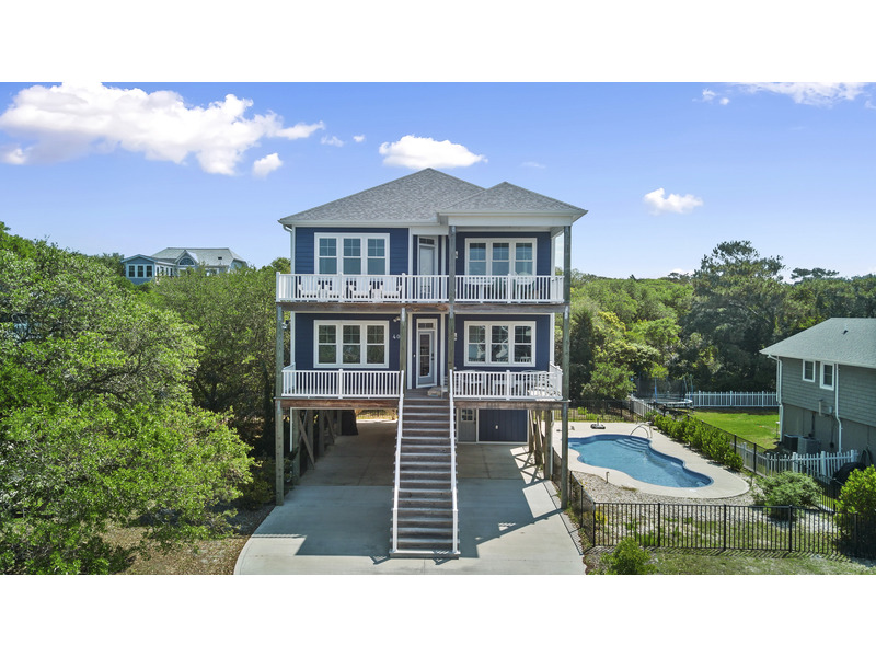 4 BR, 4 1/2 B home. K * 2Q * D * 2B (Single up/Queen down). Island Club linen service with beds made and No Worries Triple Sheeted beds. Large 35' x 16' private swimming pool with extra large umbrella and lounge chairs. This beautiful never before rented home is located on Coast Guard Road and only a 10-minute walk to neighborhood beach access. A quiet area surrounded by live oak trees and the home offers gorgeous waterway views and breezes. You'll enjoy the comforts of a modern, spacious home including a well-equipped cook's kitchen. Large indoor and outdoor dining tables perfect for family meals, games and gatherings. Everything you need for a relaxing getaway including comfortable high-quality mattresses. Other amenities include dishwasher, extra-large washer/dryer, 3 Smart TVs with YouTube TV and Amazon Fire Sticks, fast wireless Internet access. Furnished decks on each level with open and covered spaces to relax after a long day on the beach. Gas grill, enclosed hot/cold outside shower, ample parking for four cars. Beach wagon and beach chairs provided. Easy walking or biking distance to shops, grocery stores and restaurants. Available year-round. Four-night minimum. No smoking. No pets. 404 Channel Drive.
