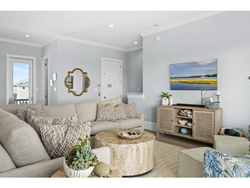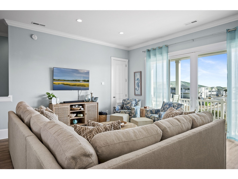 3 BR, 3 1/2 B. K * Q * 2S * QSS. Island Club linen service with beds made and No Worries Comforters. Elevator from ground level to each floor. Three-level, stand-alone townhome (no attached units) offering two private furnished balconies with beautiful ocean views of the Atlantic. Fourth bedroom is sleep den on lower level with QSS and no closet. This specially designed community pairs a combination of coastal and luxury living. Enjoy dining and shopping on the premises, stroll to the ocean or enjoy the private community pool and lounge area easily accessible just outside your door. Dishwasher, washer/dryer, 4 Smart TVs with cable and wireless Internet access. Steps away from the ocean and close to grocery stores, waterpark, bike path and public beach access with volleyball court and restrooms. Beach cart provided and your small golf cart will fit in the garage. Available year-round. Three-night minimum. No smoking. Pets allowed with $250 non-refundable fee per pet (2 maximum).