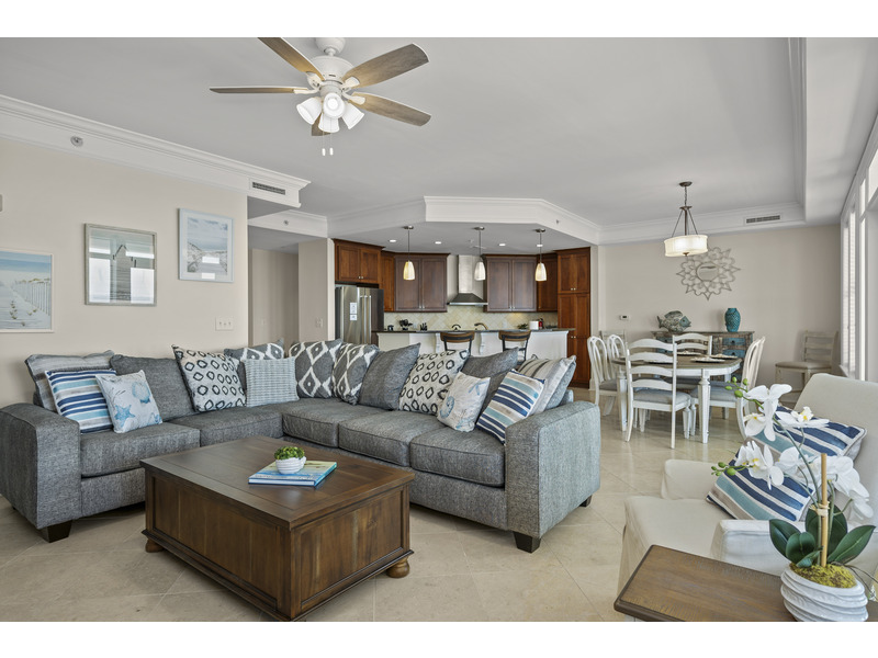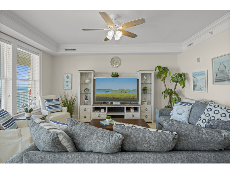 3 BR, 3 B. K * K * 2Q. Sand Castle Club linen service with beds made. Corner villa, custom-furnished with windows galore. Grande primary bedroom suite opens to oceanfront terrace. Soundside primary suite with beautiful sunset views. Dishwasher, washer/dryer, 3 Smart TVs, wireless Internet access. Spacious 2276 sq. ft. residence located on the seventh floor offering beautiful, panoramic views. Available year-round. No smoking. Pets allowed with $250 non-refundable fee per pet 2 dog max (dogs only-must be over a year old, no cats). Please note: Scheduled walkway maintenance on the West side, first floor units is currently taking place. Construction noise is expected throughout the project.