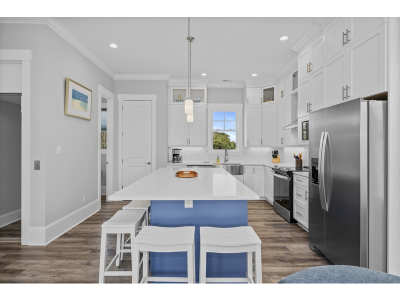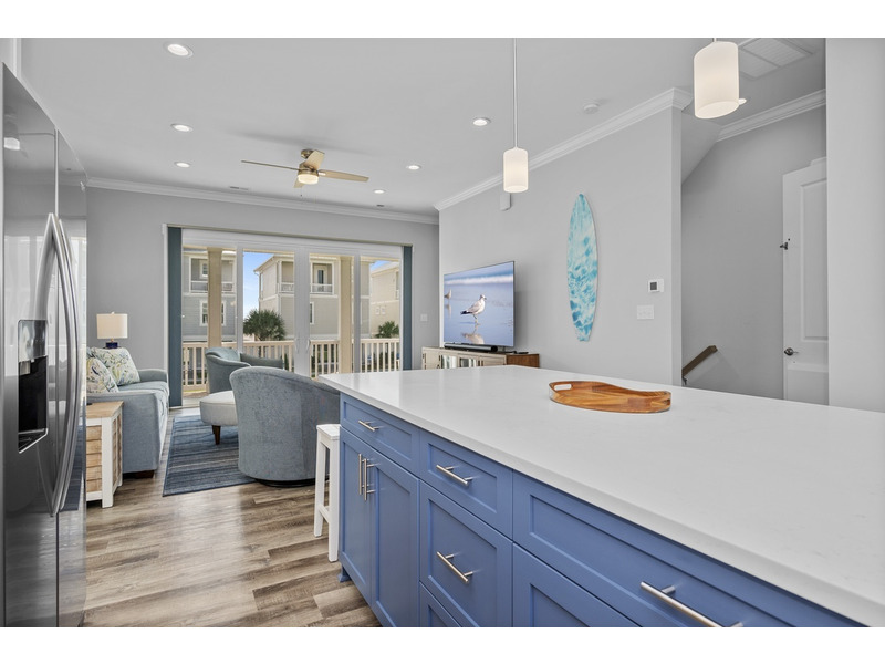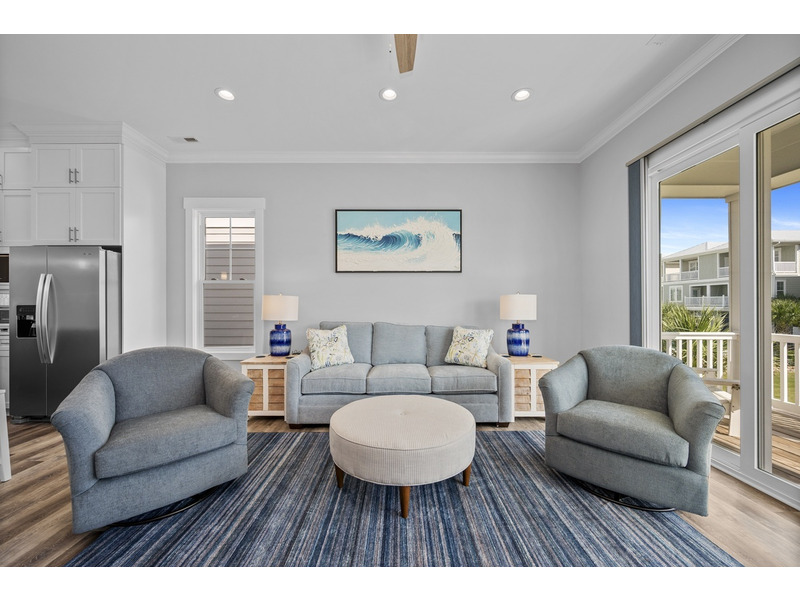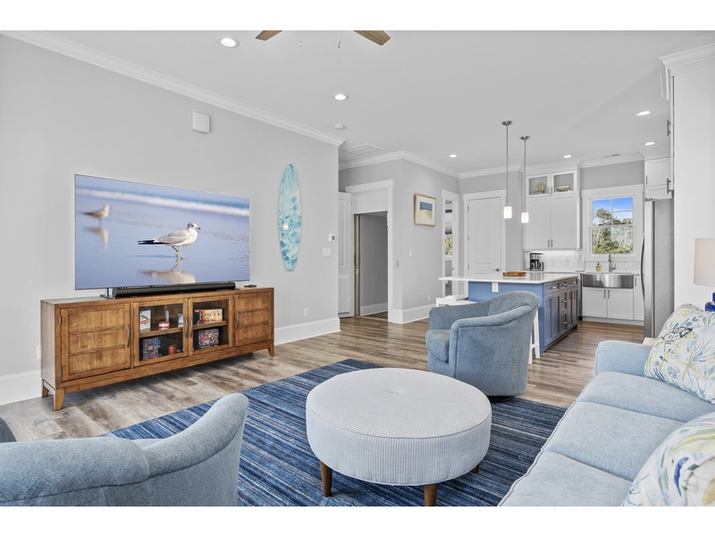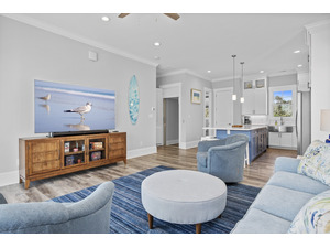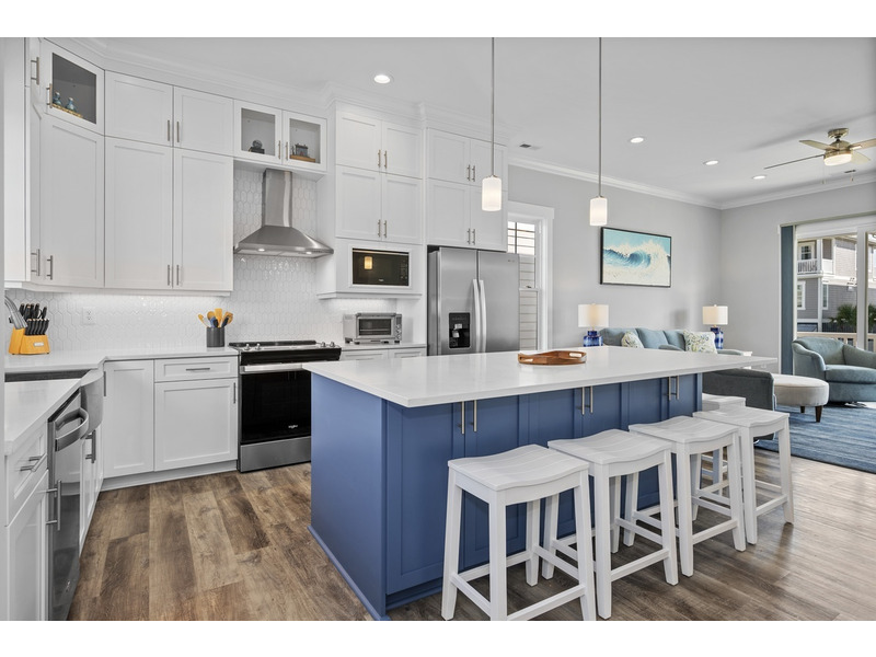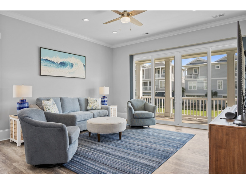 2 BR, 3 1/2 B. K * K * D. Island Club linen service with beds made and No Worries Comforters. Three-level, stand-alone townhome (no attached townhomes) offering two private furnished balconies with some ocean views. Third bedroom is sleep den with Double. This specially designed community pairs a combination of coastal and luxury living. Elevator from ground level to top floor. Ground level arcade. Enjoy coffee, dining or shopping on the premises during the summer weeks. Stroll to the ocean or enjoy the private community pool and lounge area easily accessible just outside your door. Dishwasher, washer/dryer, 5 Smart TVs, wireless Internet access. Steps away from the ocean and close to grocery stores, waterpark, bike path, and public beach access with volleyball court and restrooms. Beach cart provided. Available year-round. Weekly only summer, four-night minimum off-season. No smoking. Pets allowed with $175 non-refundable fee per pet (2 maximum). 9011 Village West Drive.