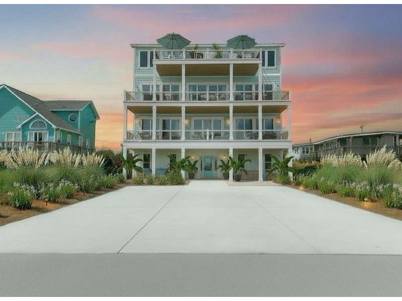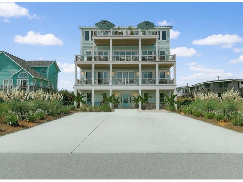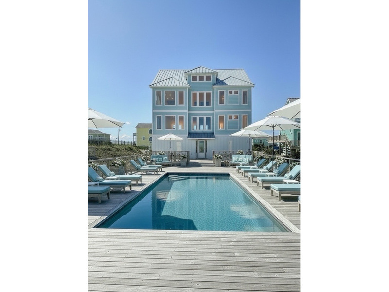 **Images shown above are computer-generated and for illustrative purposes only.** Luxury Second Row Cottage (New for 2026). 9 BR, 9 1/2 B. K * K * K * K * K * K * K * K * K. Sand Castle Club linen service with beds made. Enjoy oceanside living at its finest in this custom-built, magnificent, modern, coastal home with nearby beach access. Beautiful views. Private saltwater swimming pool, large hot tub, gas grill, multiple covered and open decks for enjoying the outdoors with family. Heated pool is available for an additional $775 per week. Elevator from ground level to third floor (does not go to top). Top floor includes two primary suites each with sitting area. Chef-style kitchen, dining, living and primary suite all furnished in coastal décor and equipped for a large family. Two laundry rooms with washer/dryers. Smart TVs throughout, providing entertainment at your fingertips. Large gathering/game room with mini-kitchen and full bath opens to pool deck. All bedrooms include Smart TVs and wireless Internet access for streaming your favorite movies and shows. Tankless, continuous flow water heater, water softener and professional landscaping with irrigation. Come create your one-of-a-kind memories in this beautiful home. Available year-round. Weekly only summer; three-night minimum off-season. No smoking. ABSOLUTLEY NO PETS! OWNERS ARE SEVERELY ALLERGIC! 404 Ocean Drive.