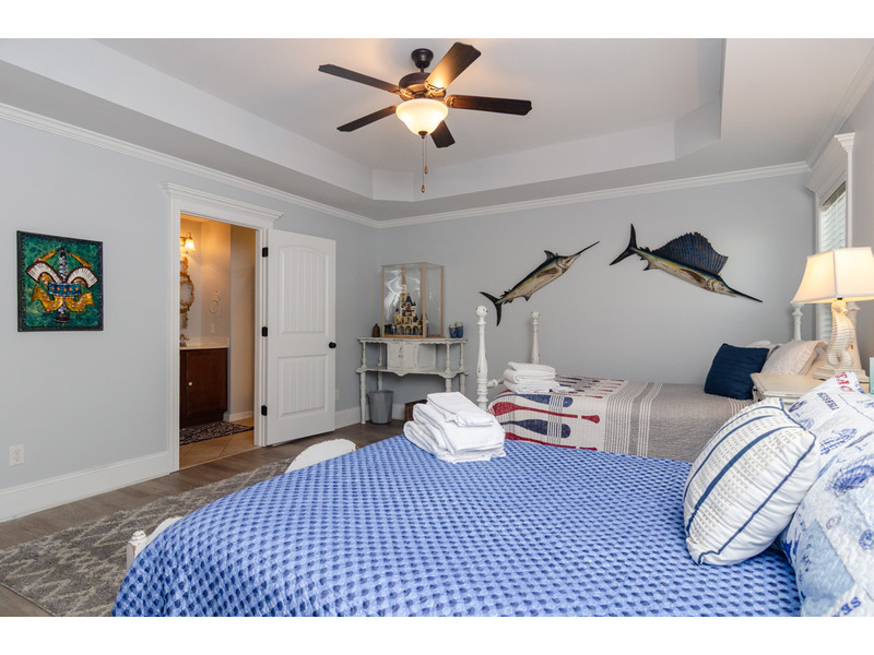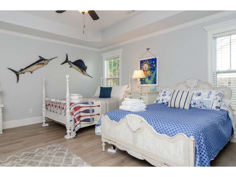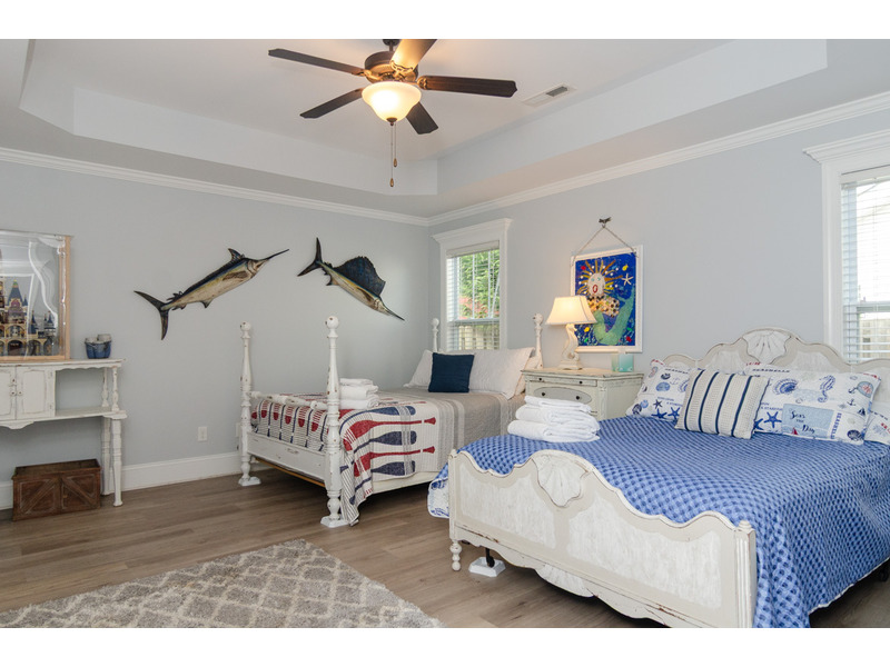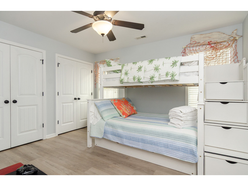 The kitchen, dining area, and living room host an open floor plan that is perfect for your family to be together for meal preps in the fully equipped kitchen (it even has a Keurig!) or just sitting around watching TV, but the young adults may want to check out the bunk room that features a large flat screen for gaming only. The main bedroom has two Full beds, a large walk in closet and private bathroom. The additional bedroom has a Full bed and the bunk bedroom has a pyramid bed - a Twin bed over a Full bed plus a Twin trundle underneath. Both these additional bedrooms share the hall bathroom.
