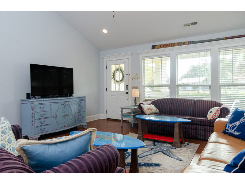 The backyard features a charcoal grill and picnic table for afternoon cookouts; and the fenced in backyard is a nice plus for your four-legged family member. You'll also find boogie boards and a beach wagon to haul your stuff. The owner provides shampoo, body wash and conditioner in the bathrooms, and a puppy bed and bowls! Finally, they also provide HBO Max, Roku TV and Netflix. Who could ask for more?