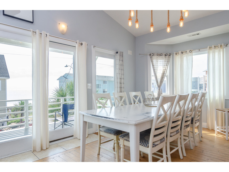 "Dolphin Watch" is a six-bedroom, three-bath home with a reverse floor plan that has gorgeous ocean views, natural light, and room for the whole family, making it the perfect vacation spot! Located on the North end of Carolina Beach, your family is within walking distance of the North End Fishing Pier, the High Tide Lounge, and Freeman Park.