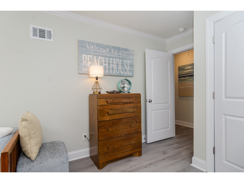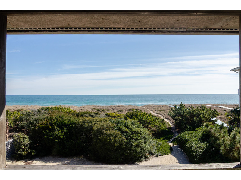 The covered porches are a true highlight of the home, offering serene spots to enjoy morning coffee, evening cocktails, or the gentle sea breezes as you watch the Atlantic Ocean and Intracoastal Waterway stretch out before you. The primary bedroom features a comfortable queen bed and direct access to the front sound facing deck, while the second bedroom offers two twin bedsperfect for kids or friends. A full bathroom conveniently serves both bedrooms, and the ground floor provides a shared laundry room along with an enclosed outdoor shower to rinse off sand and salt after a day at the beach.