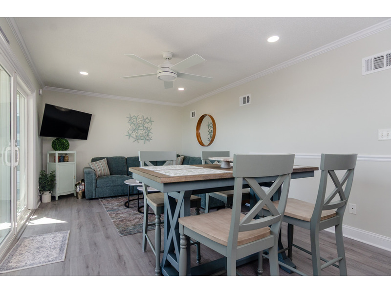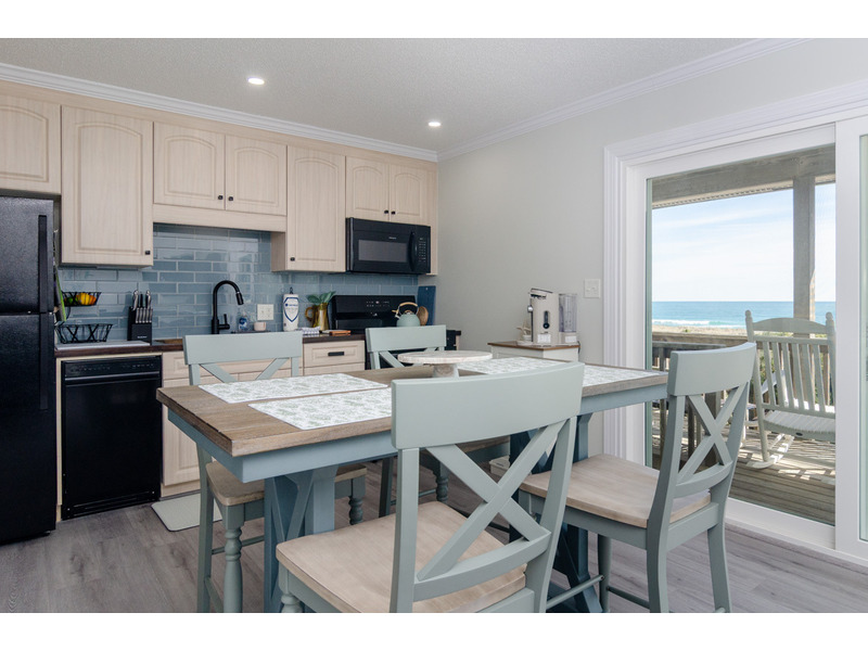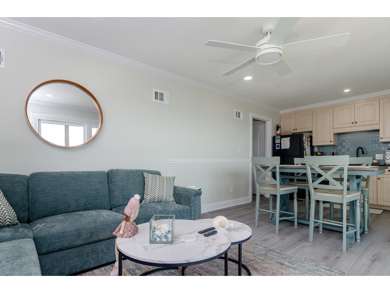 Step inside and you'll be greeted by a bright, open living space where the heart of the home comes alive. The well-equipped kitchen features a Pullman-style layout and a cozy dining table, ideal for preparing meals and gathering for breakfast, lunch, or a casual dinner together. After a day of sun and sand, kick back on the plush sectional sofa, stream your favorite shows, or simply soak in the sound of the waves just outside your window.