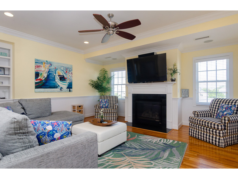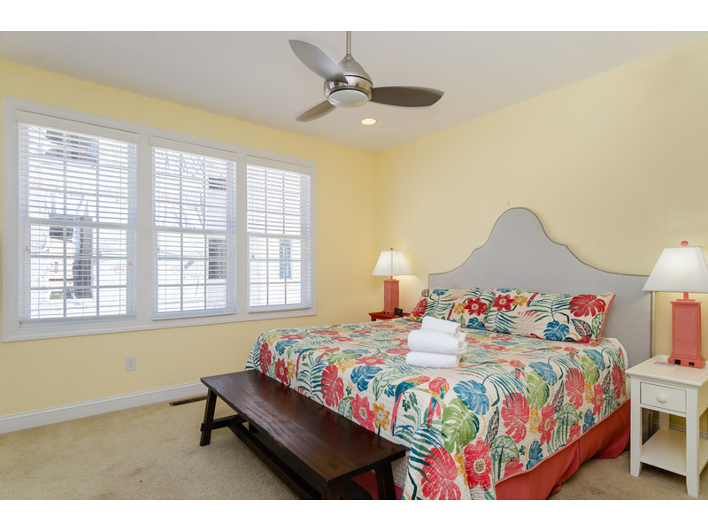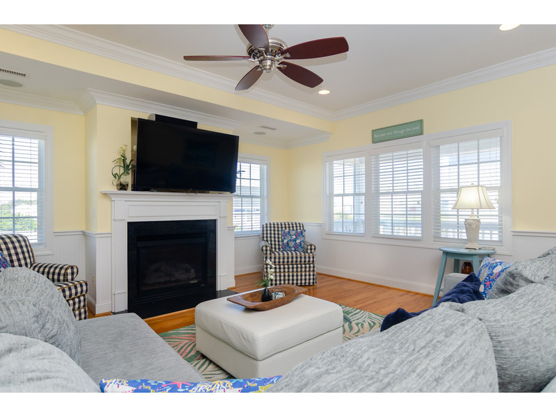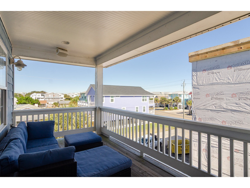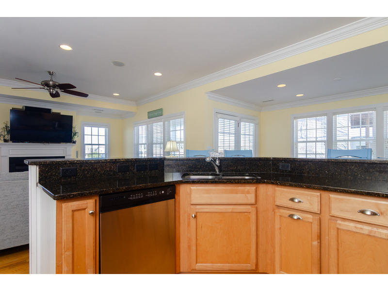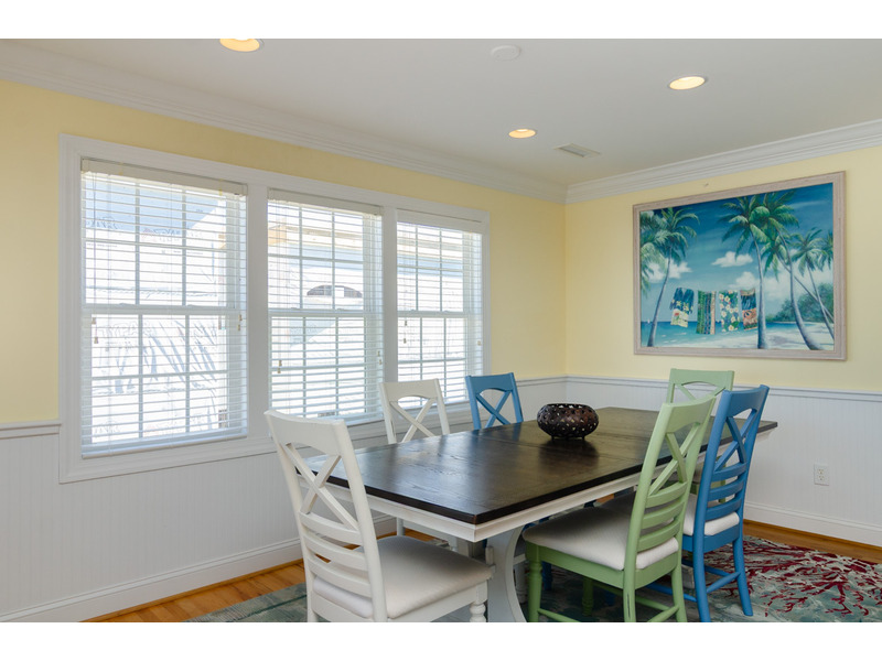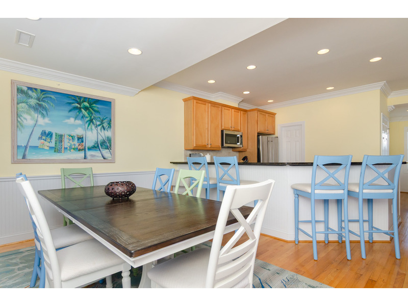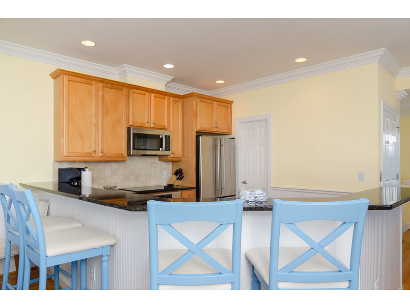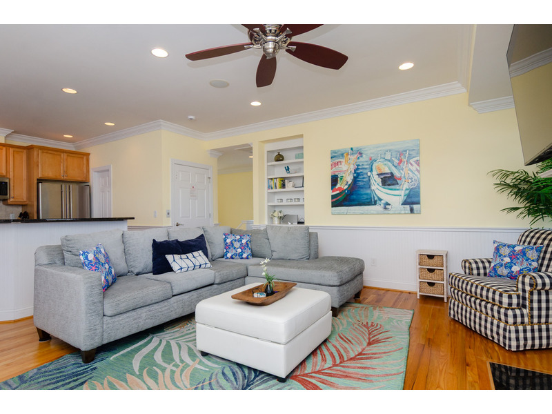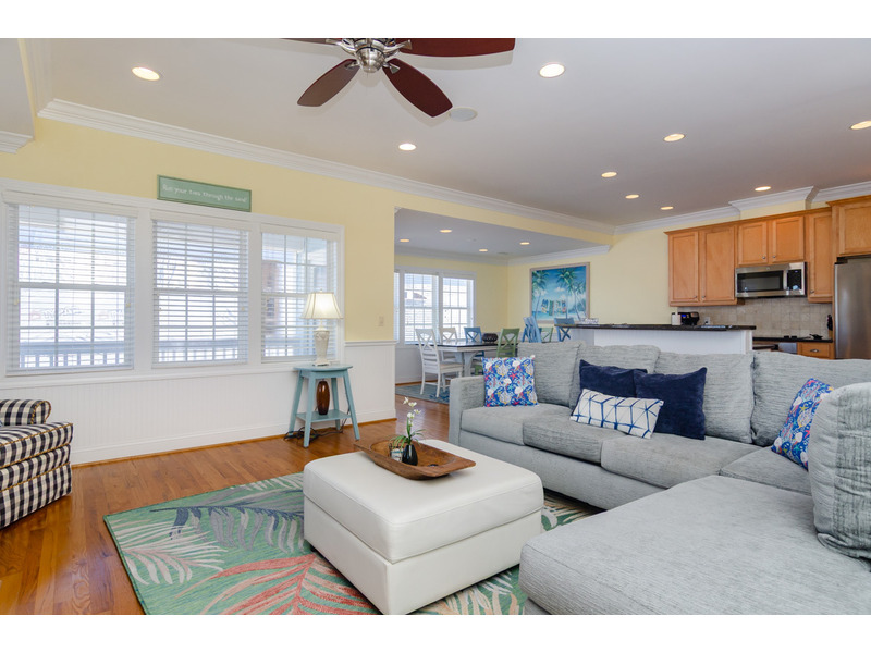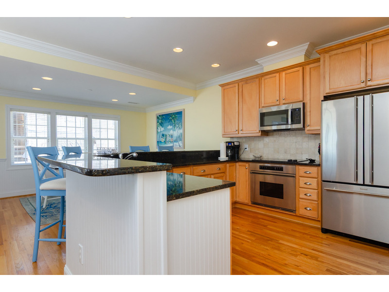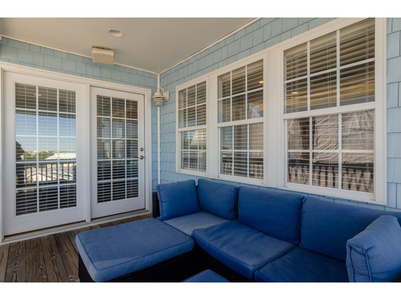 The top floor of this beautiful home is accented by wood floors and spacious floor plan. An open concept living room makes a wonderful gathering space for families and seamlessly flows to the kitchen and dining area. A large sectional sofa provides ample sitting room for everyone to spread out and snuggle up on the couch together. The well-equipped kitchen features stainless steel appliances, granite countertops, a large pantry to store all your groceries, and everything you need to make your favorite meals. There is a deck off the dining area with a cozy outdoor sofa so that you can kick back in the salt air and listen to the waves crashing in the background. Enjoy morning sunrises or evening cocktails is the soft salty breeze. There is also a half bathroom and laundry room with full sized washer and dryer for added convenience.