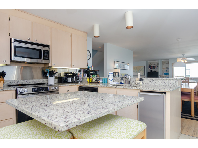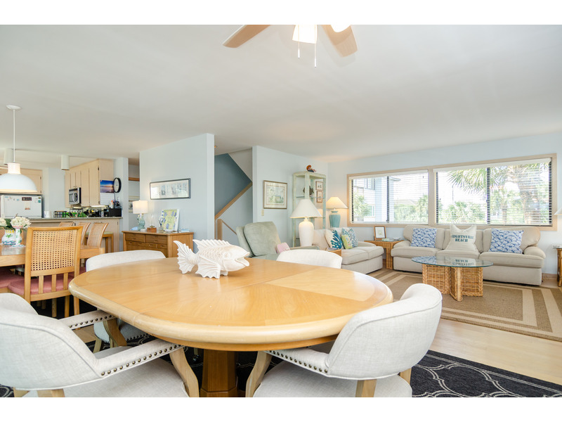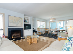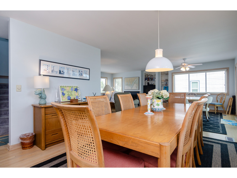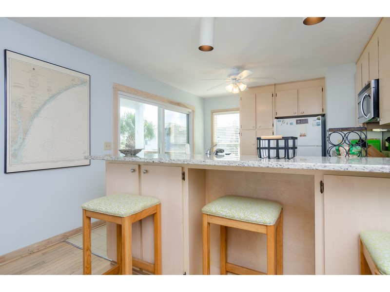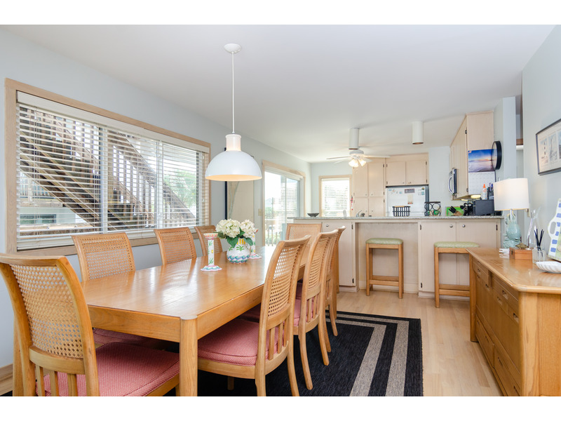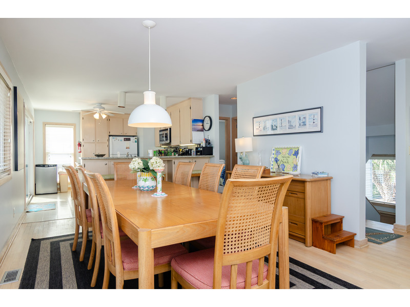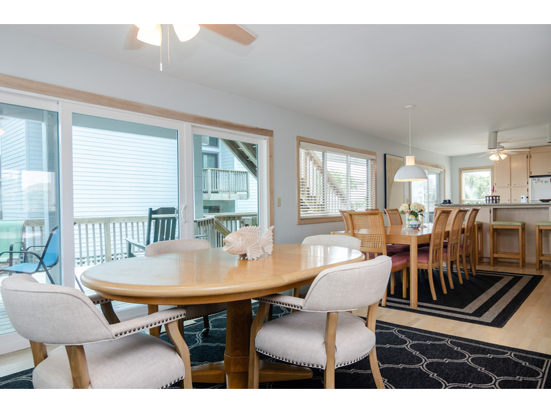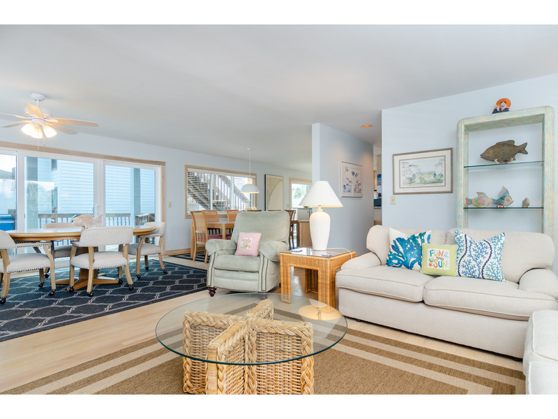 As you arrive, you'll be greeted by the coastal charm of this well-maintained home. Head upstairs to the main living level, where an open-concept layout seamlessly connects the kitchen, dining, and living areasideal for spending quality time together. The kitchen is fully equipped for everything from casual breakfasts at the island to family-style dinners at the large dining table. After a satisfying meal, step out onto the deck to feel the ocean breeze and watch the sky turn pastel as the sun sets. This level also features a comfortable queen guest room with convenient access to a nearby full bathroomperfect for guests who prefer to avoid stairs during their stay.