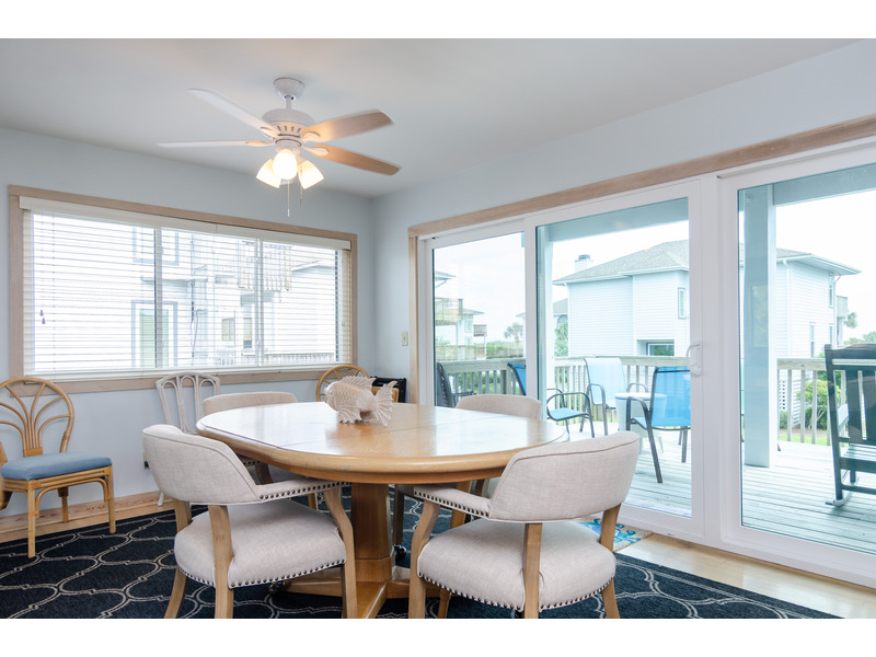 Outside, the home continues to shine. After a long day of sun and sand, rinse off in the enclosed outdoor shower. A series of storage lockers underneath the house keeps all your beach gear organized and ready for the next adventure. Whether you're grilling out, enjoying a quiet moment on one of the many decks, playing a casual game of bocce, or heading out for an early morning walk along the beach via the private community access, 9 Sea Oats offers everything you need for a relaxing and memorable coastal getaway.