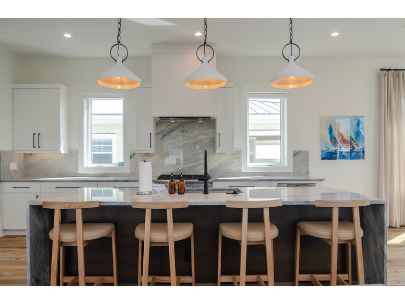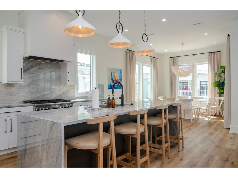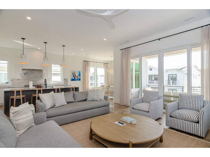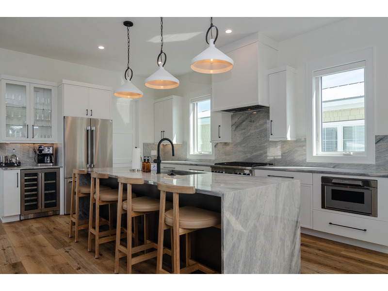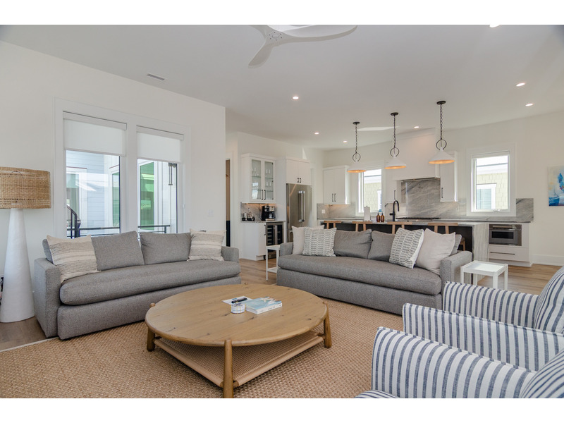 The property features five beautifully appointed bedrooms, including two primary suites with king-sized beds, providing a serene and luxurious retreat for couples or solo travelers. Two additional guest rooms with queen beds, along with a bunk room featuring two sets of twin/twin bunk beds, cater to all your sleeping arrangements. Each room offers ample space and comfort, ensuring a restful night's sleep.