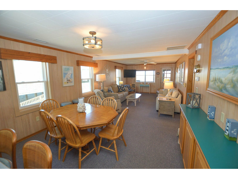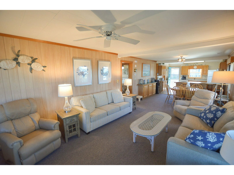 LEVEL 1: Spacious Family Room, Large Breakfast Bar separating Kitchen and Dining Area, Three King Bedrooms, One Full Bath, One Half Bath, Access to Screened Porch and Deck.