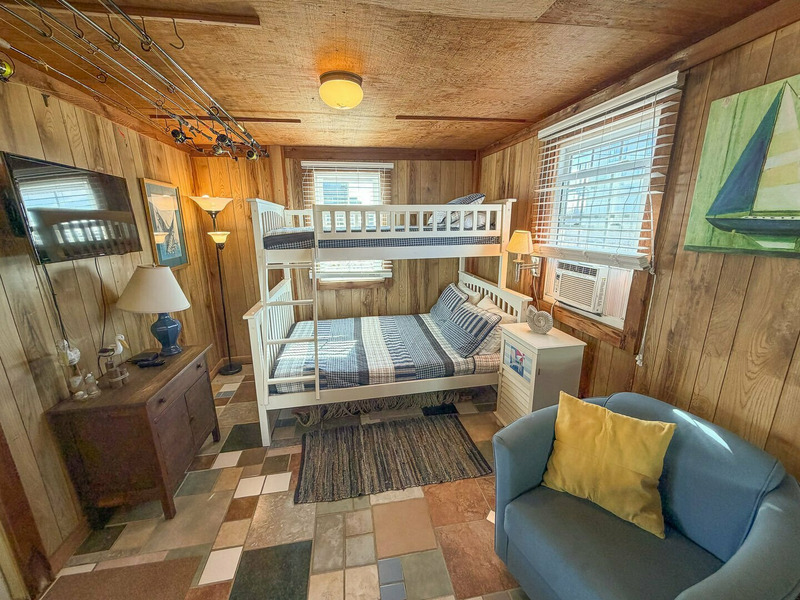 GROUND LEVEL: Bedroom with Pyramid Bunk, Daybed, and 32" Flat screen TV, Half Bath, Sitting Area, Window A/C (outdoor entry only to this room), Laundry, Enclosed Outside Shower, Parking.