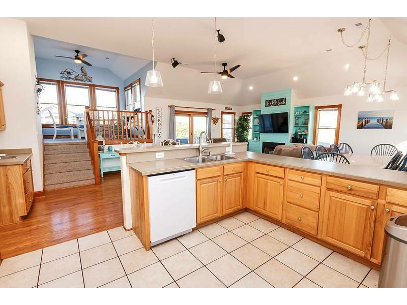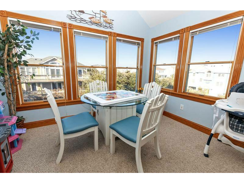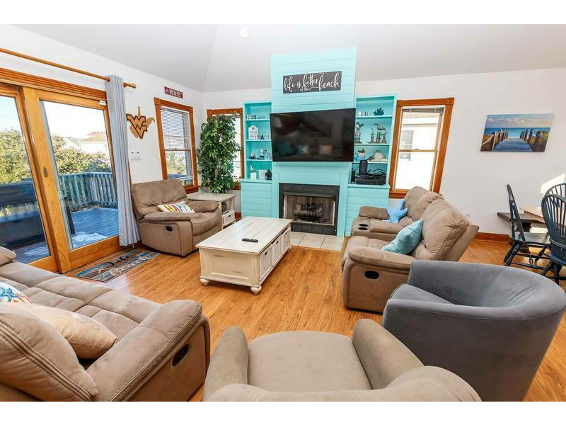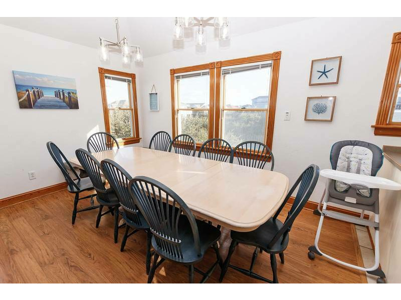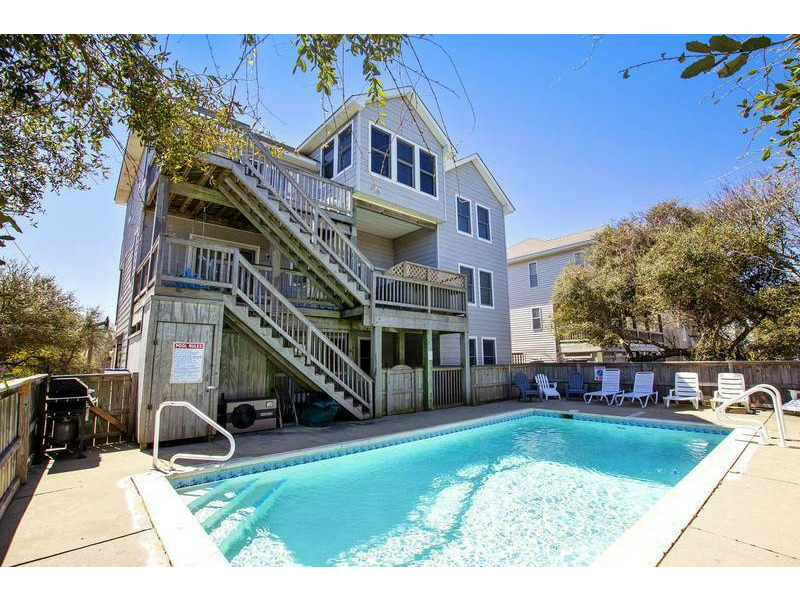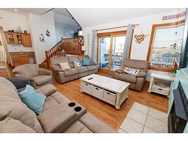Extras: Private Pool (15 x 30, heated for $350 weekly fee), Hot Tub, 8 TVs, 8 VCRs, 2 DVDs, pack-n-play, high chair, high-speed wireless internet, basketball hoop, video/DVD library, hair dryers, arcade game, gas fireplace (available November 1-April 30), gas grill, community water, linens and towels provided, and Ocean Lakes Community Amenities. No Smoking. No Pets. Seasonal Flex Stay available from October 1 - May 15. Distance to beach access: 450'. House Address: 653 Sand Plum Court. Beds: 3 Kings, 3 Queens, 2 Bunk Sets, Trundle, Queen SS. Key Type: Keyless entry. CHECK IN LOCATION: 1213-C Duck Road, Duck Office.