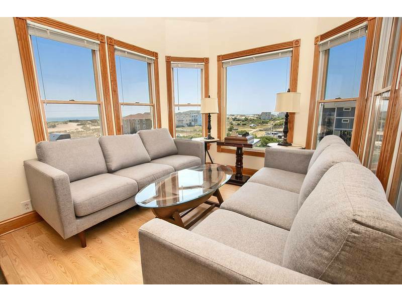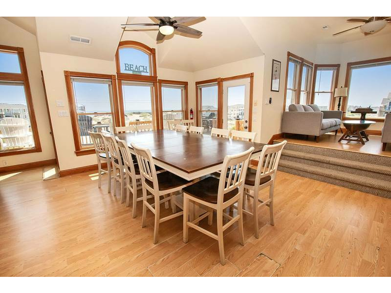 Top Level: Open great room with flat-screen TV/DVD, ocean views and deck access and an elevated ship's watch. Two dining room areas, one offering seating for 14 with deck access and the second seating 8 with high chair and beverage cooler. Kitchen with counter seating for 3, 2 dishwashers, prep sink and icemaker and a half bathroom. King Master Bedroom with flat-screen TV, deck access and private bathroom with jetted tub and flat-screen TV.