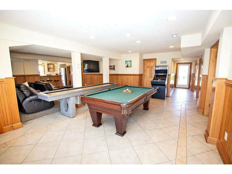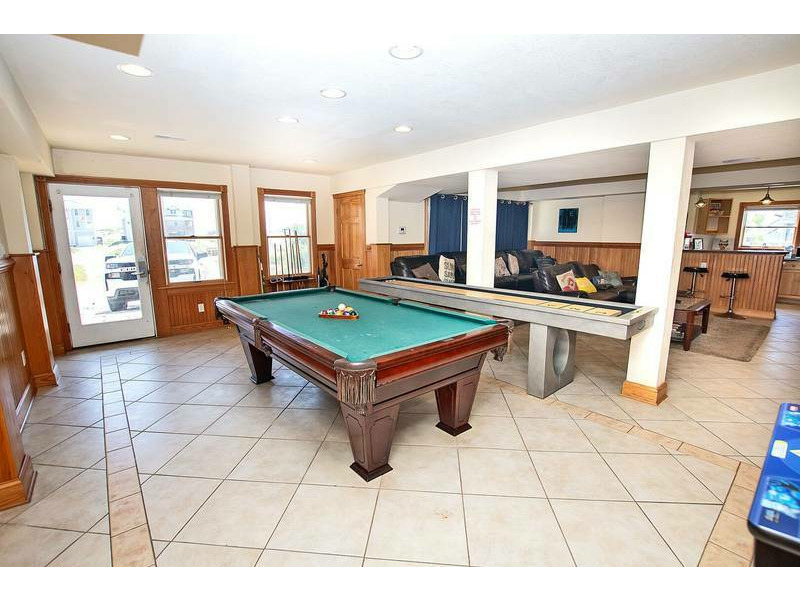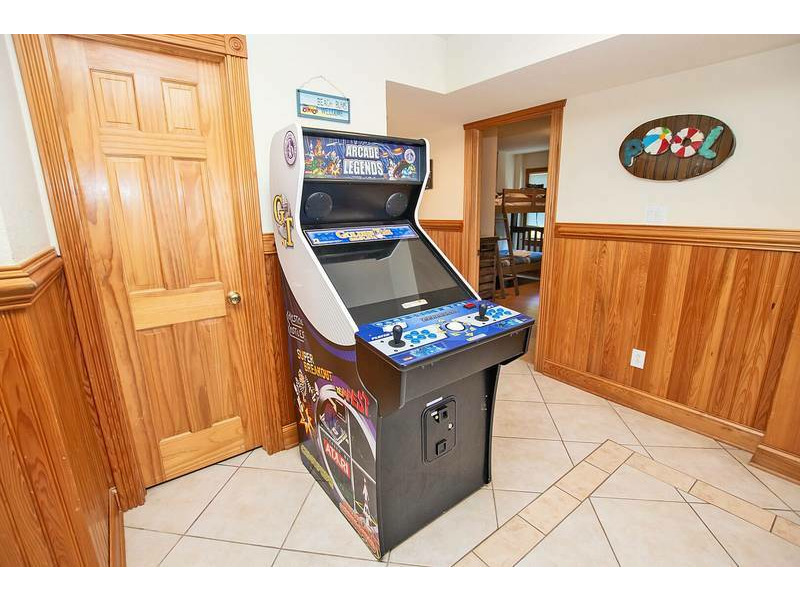 Ground Level: Exterior amenities include a fully gated private pool and hot tub and an enclosed outside shower. Inside you'll find the Rec Room with pool table, shuffleboard table, arcade game, tiered seating with flat screen TV/DVD, foosball coffee table and a kitchenette with bar seating 3, sink, dishwasher, popcorn machine, microwave and full size refrigerator. King Master Bedroom with flat-screen TV and deck access, Bedroom with 2 DuoBunks (double on bottom, single on top), full hallway bathroom and a Bedroom with 2 Bunk Sets. Elevator access to all levels.