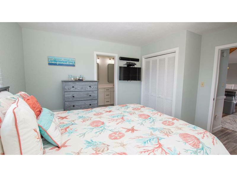 Mid Level: 4 Master Bedrooms to include: 3 Queen Master Bedrooms each with a flat-screen smart TV, private bathroom and deck access and a Master Bedroom with a Single over Queen DuoBunk and flat-screen smart TV. Laundry area with washer and dryer.